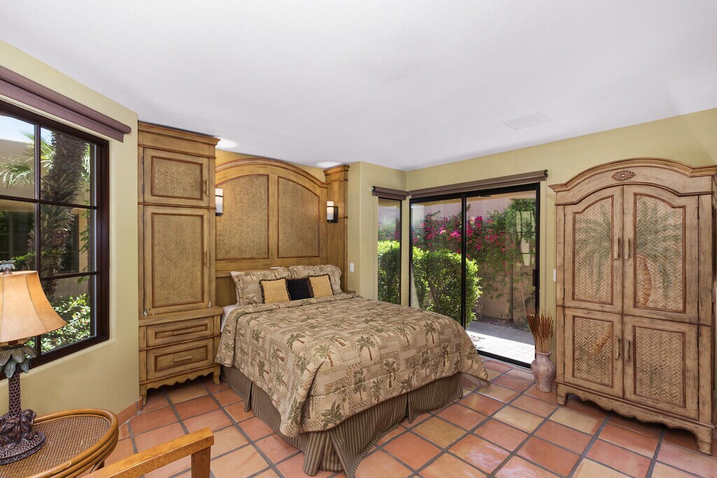 Step into your own private Mountain Resort in this stunning Hacienda-style home now available for lease. The home offers a truly unique and luxurious experience starting with its generous,flowing layout. The spacious living room and dining area and den/media area feature high beamed ceilings and large windows that provide an open view of the sparkling pool and lush landscaping,creating a seamless indoor-outdoor feel. The fully equipped gourmet kitchen is a chef's dream,perfect for creating culinary masterpieces. With four spacious bedrooms,including a private casita,there is plenty of room for family and guests. The large masterbedroom offers a tranquil retreat with a direct view of the gorgeous pool and spa. The backyard/patio area is a private oasis with a one-of-a-kind waterfall that cascades down a rock feature,creating the illusion that the water is flowing directly from the mountains. This dramatic and peaceful water feature offers a continuous,tranquil soundtrack,transforming the entire outdoor space into a serence escape perfect for relaxation and entertaining. One of the most outstanding features of this home is its secluded location on a quiet cul-de-sac,offering complete privacy and peace. decorated to perfection with hacienda-like furnishings,this home is not just a place to live,but a lifestyle. It also includes a two car garage The home is adjacent to the La Quinta Resort which has wonderful restaurants,bars and shops. It's also very near Old Town La Quinta which includes more dining venues,bars,shops. Rent from now to December 31,2025 is $24,000 per month. Rent from January thru April 2026 is $27,000 per month NO PETS