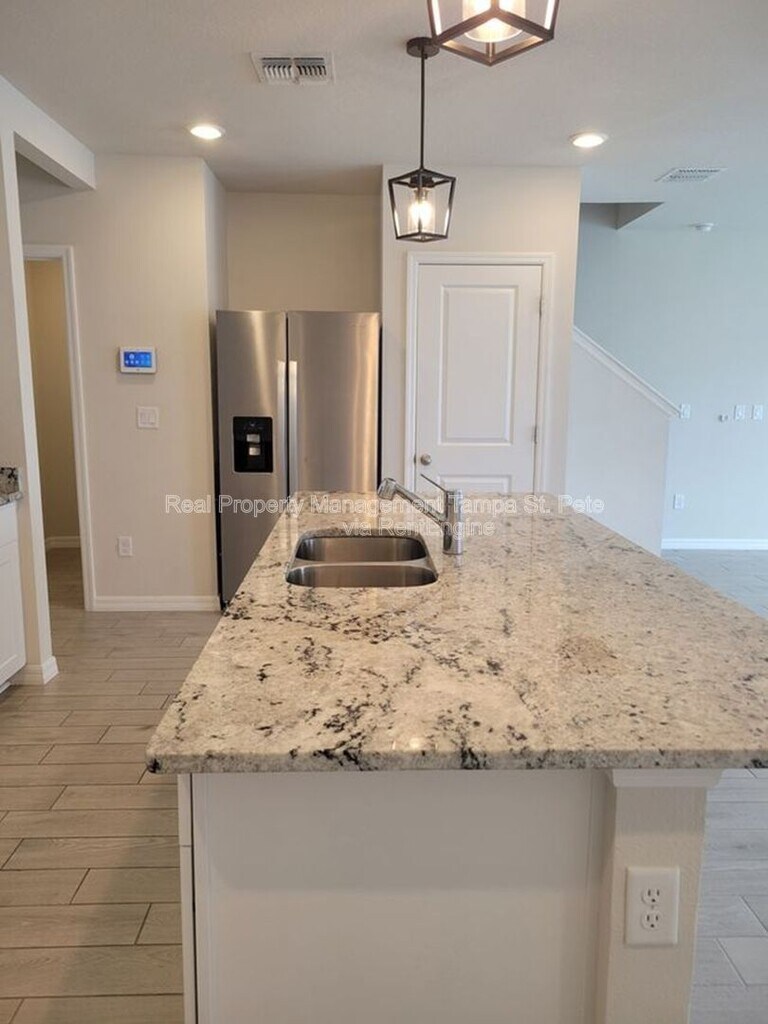 ***MOVE IN RIGHT AWAY*** Stunning, modern style single family townhome. Built in 2023 with pristine attention to detail, it spans over 1566 sqft, promising abundant space for a versatile lifestyle. With 2 well-appointed bathrooms on the second floor and half bathroom on the first, the property exudes comfort and sophistication. A wide-open floor plan with attached, beautiful kitchen with big cabinets, stainless steel appliances, and a contemporary island perfect for barstools. The half bathroom near the kitchen finishes this floor. Upstairs find a small landing/bonus space that the owner used a music room. Down the main hall is the primary bedroom is large in size, has a walk-in closet, and a beautiful en suite bathroom. The 2 secondary bedrooms share a bathroom with a jack and jill set up. Contemporary and move in ready. Nestled in the thriving community of Pasco County on a generous 1920 sqft lot, it's a dream come true for families seeking a balance of community and privacy. The mailboxes and small community pool are only steps away. Amazing amenities (including Epperson) are close by. Enjoy the privilege of being the resident to benefit from its strategic location offering proximity to highly rated schools. The community pool is only steps away! Embrace a lifestyle! Contact us right away to request a showing! Minimum qualifications – over 3 times rent amount income, 550 credit, no evictions By submitting your information on this page you consent to being contacted by the Property Manager and RentEngine via SMS, phone, or email.