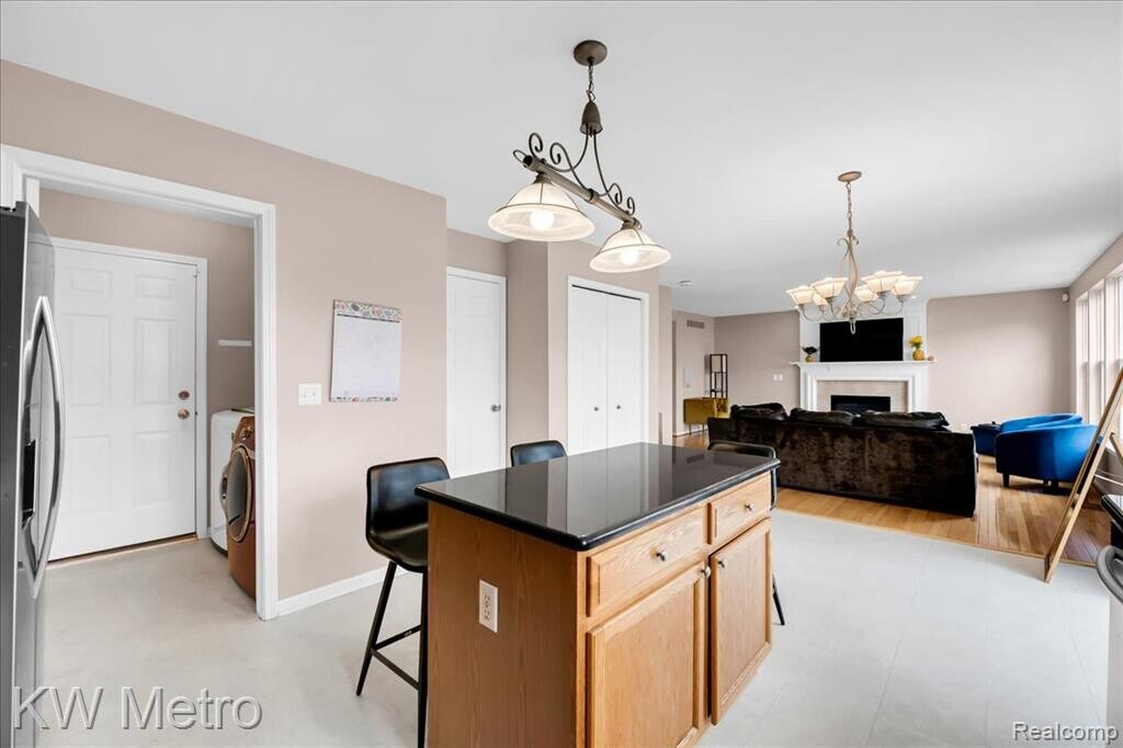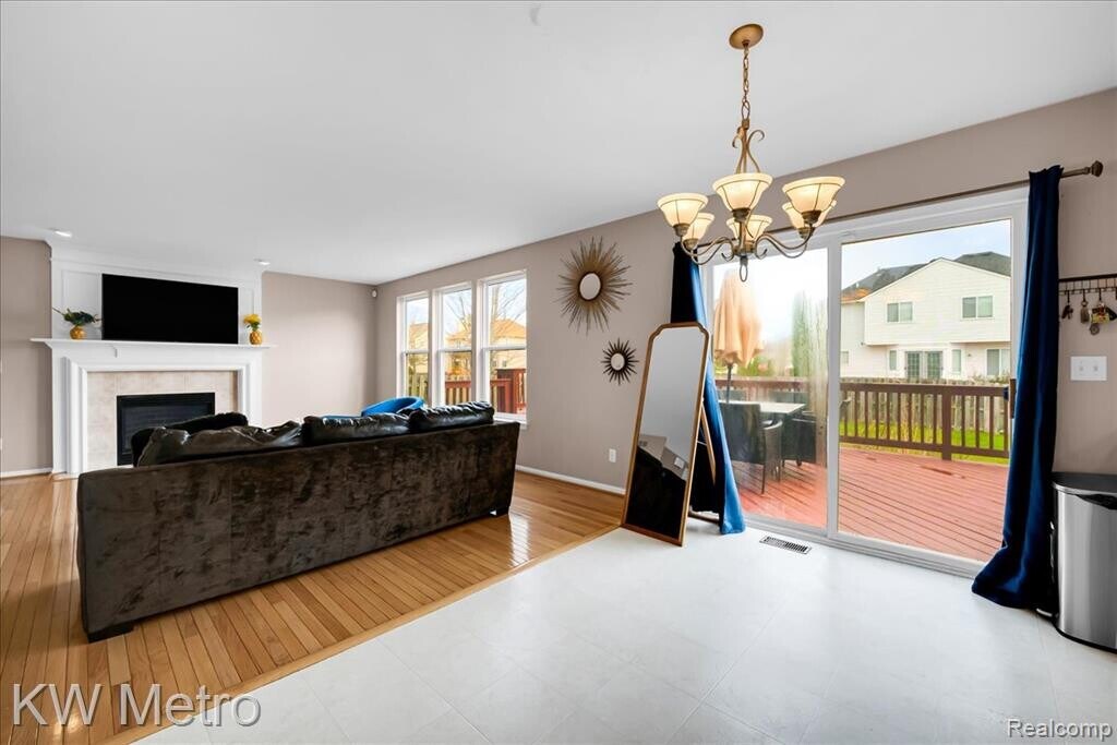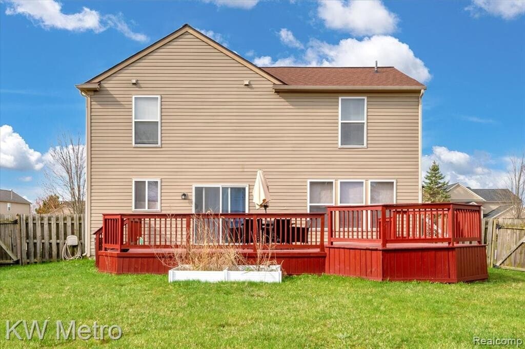 Beautiful colonial on a spacious corner lot with a covered front porch and great curb appeal. Open main floor layout with wood floors, fireplace, and abundant natural light. Kitchen features granite countertops, stainless steel appliances, ample cabinetry, pantry, and island, with doorwall leading to deck and fully fenced backyard. First floor includes half bath and laundry room. Upstairs offers 4 bedrooms and 2 full baths, including a primary suite with vaulted ceilings, private bath, and walk in closet. Partially finished basement provides additional living space. Well maintained with major updates completed. Immediate occupancy available. Schedule your showing today.
