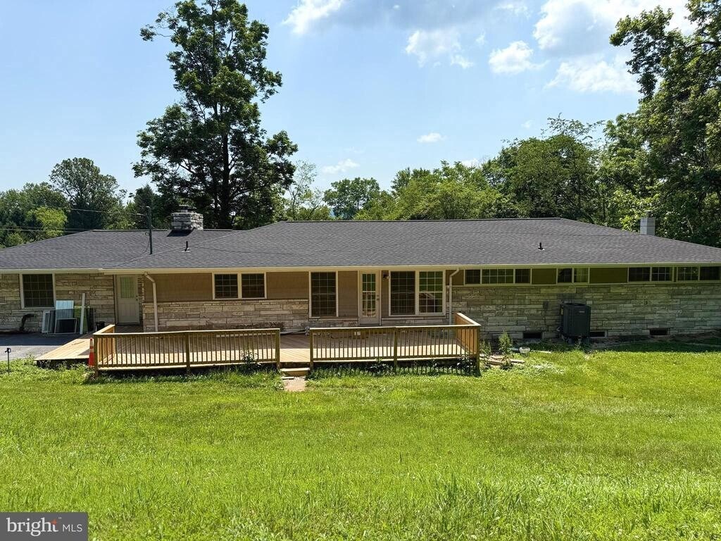 Welcome to this stunning, fully remodeled stone rancher offering over 3,500 finished square feet of stylish living space. This 4-bedroom, 2.5-bath home has been thoughtfully updated from top to bottom, featuring brand new vinyl plank flooring throughout, professionally painted, and a brand new kitchen with quartz countertops, stainless steel appliances, and all-new cabinetry. The bathrooms have been beautifully renovated. You will love the lower level with what seems like an endless amount of space: spacious: perfect for a rec room, game room, home theater, or all of the above. Cozy up by the wood-burning fireplace or take advantage of the extra bonus room for a home office or gym. An oversized two-car garage provides ample storage, while a new roof and new heat pump add peace of mind. Lawn care is included, so you can enjoy the many acres of scenic land without the upkeep. Relax on the front porch and take in panoramic views of rolling hills and a graceful weeping willow. The rear deck is also spacious and perfect for entertaining or outdoor dining. Please note that this home is located on a total of 6.15 acres which is shared with a cabin that is located closer to the roadway as both homes are located on the same parcel. There is a shared driveway at entrance to this property. The land with this rental is in front of the property and behind the property up and past the treeline at the rear of property. Of the 6.15 acres the two rentals are located on, an estimate 1.5-2 acres is wooded. The blue pole parn behind and to the far right of this property is not part of the rental. However, this home does have a very large two car garage and very long driveway which allows for plenty of parking. Move-in ready, stylish, and serene—this one has it all.