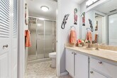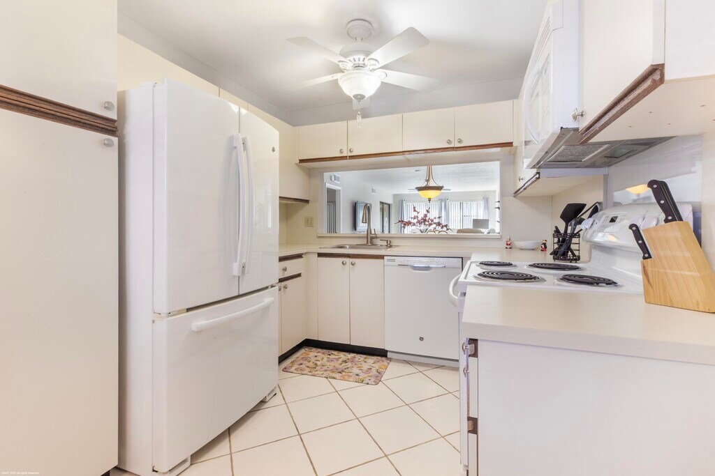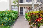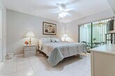 First floor condo unit located within walking distance to the satellite pool. Freshly painted and well maintained 2 bedroom 2 bathroom with anopen layout. Tiled floors throught for a seamless flow. Primary suite has a large walk in closet and a separate vanity with a private enclosed shower. Insidelaundry closet. A screened in and tiled patio with a large storage closet offers peace and tranquility.The condo has been outfitted with accordian shutters forease and peace of mind during the summer months. Recently installed window treatments. This condo is being offered fully furnished.