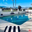 Beautifully remodeled and upkept, south facing home with private, heated pool. No neighbors in the back, it has that peaceful, tranquil, open & airy feel. New, waterproof, vinyl flooring in all rooms. 2 bedrooms on separate sides. Master/Primary bedroom has a balcony with direct access to private heated pool and gorgeous views of the mountains and golf course. Privacy in the Backyard with No neighbors. New quartz countertops in all rooms. Newer appliances. Open style, oversized living room with fireplace and open kitchen with an island. Recessed lights, beautiful ceiling fans, newer Ac & water heater. Separate laundry room and lots of closet space. Community offers 2 additional heated pools, jacuzzi/spa, tennis courts, basketball court, playground, rose garden, clubhouse/rec room available for special events with full kitchen, meeting room, free golf and more (might be a fee). 5 mins away from El Paseo, Wholefoods & Olympic size swimming pool aquatic center with waterslides. Live like you are on vacation in Paradise!! MLS# 25573451