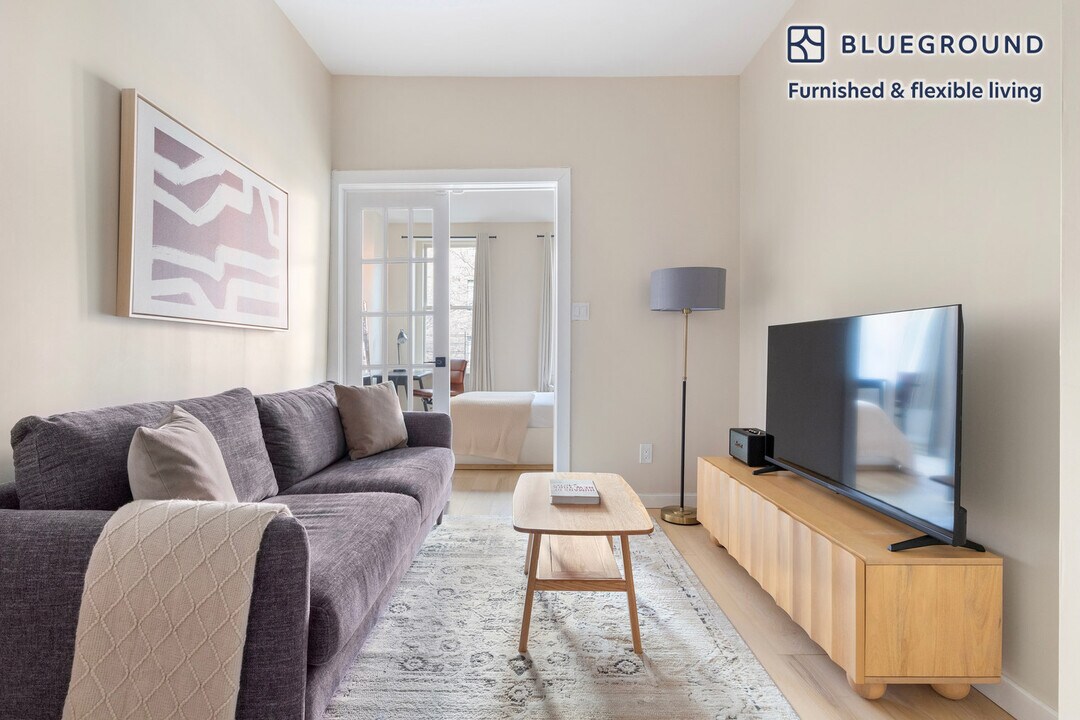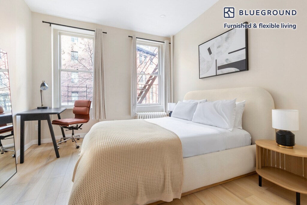 Discover the best of New York, with this one bedroom apartment in West Village. It’ll be easy to simply show up and start living in this furnished apartment with its fully equipped kitchen, living room, and our dedicated, on-the-ground support. (ID #NYC2109) The advertised rate of $8,180/month is the lowest available price, based on a 12 month(s) stay with a move-in date of March 9, 2026. Rates vary depending on the duration of stay, season, and other parameters. For exact pricing and additional pricing components, please visit our website and enter your desired move-in and move-out dates. The rate is applicable when billed upfront; it can be higher if billed in multiple payments. Brokers are welcome to reach out. Were you looking for an unfurnished lease? Try Blueground instead and upgrade from unfurnished to furnished living: - Furnished at rates comparable to unfurnished - No setup or furniture costs - save thousands - Move-in ready - save time, just bring your suitcase Designed with you in mind Gorgeous furniture, fully equipped kitchen, smart TV, and a premium wireless speaker are just a few of the amenities you’ll find inside this one bedroom apartment. Ideally located in New York, you’ll find a lot to love outside as well. When you’re ready to relax, you’ll be happy to discover every Blueground bedroom comes with superior quality mattresses, luxury linens, and cozy towels. We handle everything so you can simply show up and start living. This apartment also offers in-apartment laundry. Sleeping arrangements Queen Bed, 63in/160cm Amenities Building amenities unique to this one bedroom apartment include an on-site: - Dryer - Washing machine Arrival and ongoing support The entire apartment is yours to enjoy! Throughout your stay, you’ll have access to our Client Experience team through the Blueground App. You can schedule additional cleanings, submit maintenance requests, and view our neighborhood recommendations with just a few taps. We’ll share all details upon confirmation of your stay. Ideally Located This furnished rental is located in the West Village. Cute storefronts and some cobblestone streets give the charming neighborhood the feel of a quaint small town. Populated with shoppers, diners and art lovers. The historically artistic area has numerous piano bars, cabarets, and theaters to discover. Both Times Square and Wall Street are just 15 minutes away by subway. Other things to note This Blueground apartment has flexible lease options, allowing you to book it for one month, a year, or more. Please keep in mind that this is a walk up building. Brokes CYOF. We take great pride in ensuring every photo displayed is shot in our own units with our actual furnishings. That said, we regularly refresh our decor and furniture arrangement, which may differ from what’s pictured. [SI]
