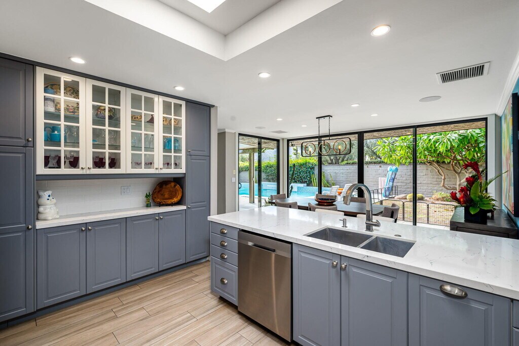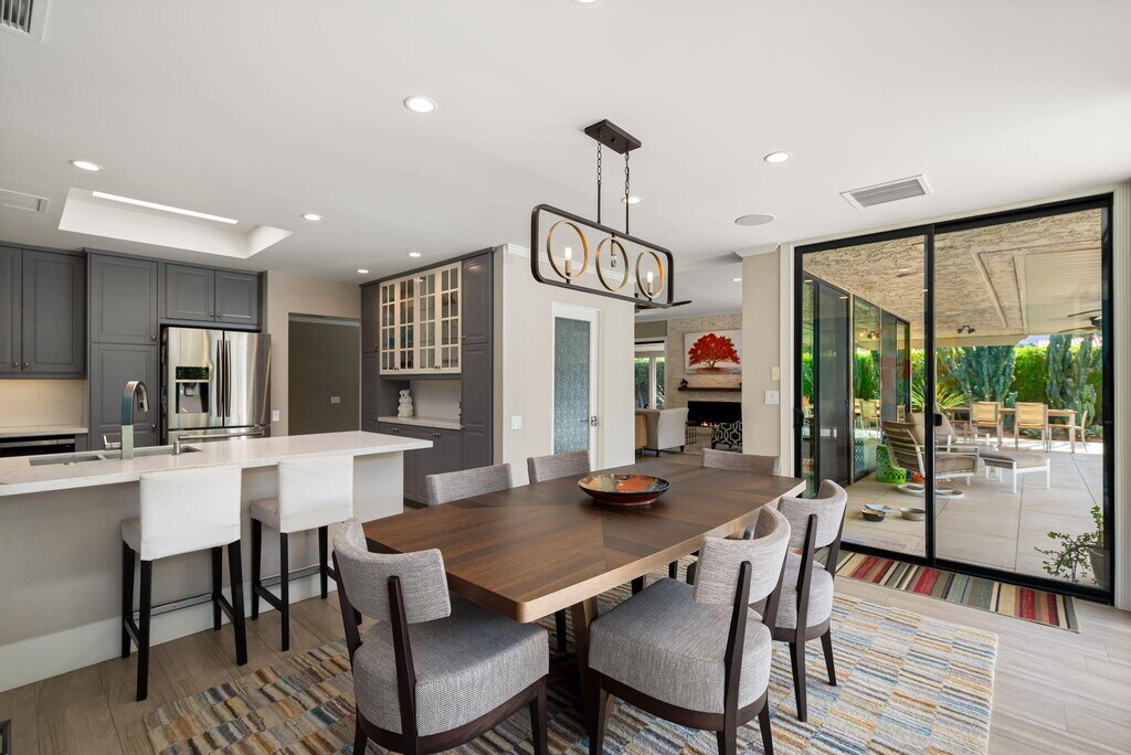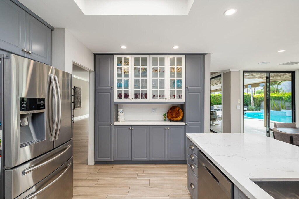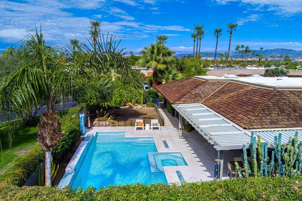 Live your best life in The Springs Country Club! This beautifully updated 3 bedroom,3 bathroom home blends modern elegance with comfort,offering a seamless indoor-outdoor flow ideal for entertaining or relaxing. Step outside to enjoy your private oasis complete with a sparkling pool,spa,and panoramic mountain views. The gourmet kitchen showcases custom cabinetry,quartz countertops,stainless steel appliances,and a skylight that brightens the space with warm desert. The primary and second guest bedroom are generously sized,providing flexibility for guests while the third guest bedroom is used as a home office. Each bedroom has an appointed en suite bathroom. Enjoy resort-style amenities within The Springs Country Club,including championship golf,tennis,pickleball,fitness center,and a vibrant social community all within minutes of world-class dining and shopping in Rancho Mirage.