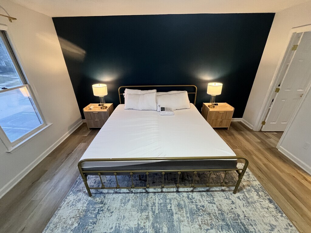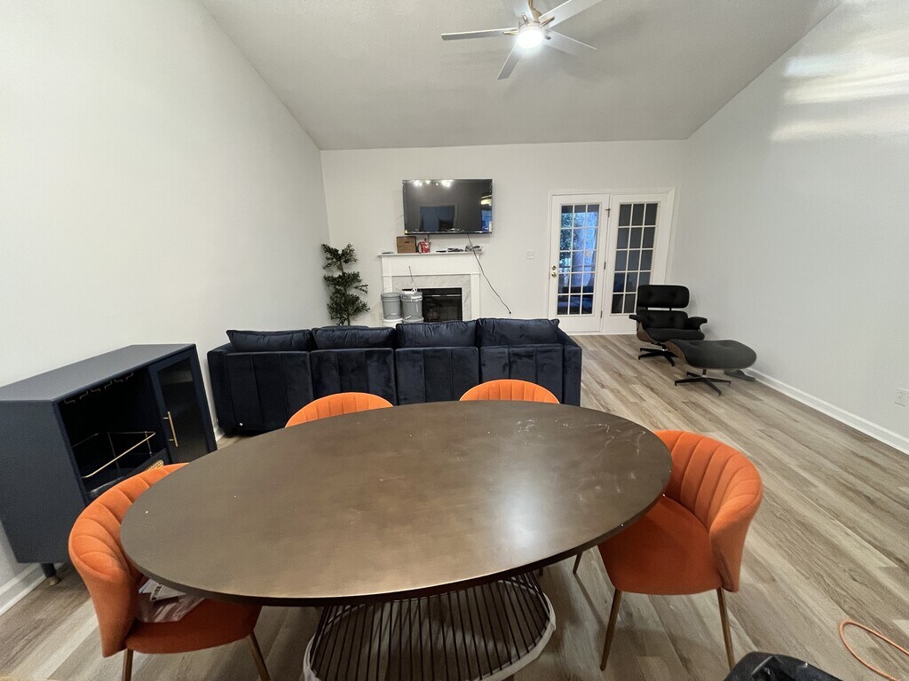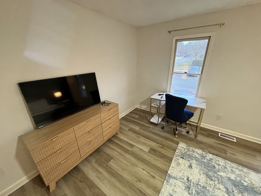 Fully Furnished Rental with short, medium and long-term leases available. Pet-Friendly, Pool, Screened-in Porch, and MOVE-IN SPECIAL during March 2026 ($1,000 rent credit). Gorgeous and modern townhome MINUTES from Duke Hospital, Duke University, and DT Durham. Enter through your covered porch into your recently renovated home. To your left is the smaller of the 2 primary en-suites. This bedroom is highlighted by a wall of windows beaming with nature light overlooking the front of the home, and includes queen bed (foam mattress) with 32in TV, 2 night stands with lamps, and a large closet with french doors. Attached bathrooms jack-and-jills with the hallway and includes tub/shower combo and luxurious gold finishes. Continuing down the hall you will find the kitchen upgraded with tall white cabinets, pull-out trash bin, quartz countertops and tile backsplash, a single-bowl sink overlooking the living room, and SS Appliances. Across the hallway from the kitchen is the laundry room (Laundry Machines INCLUDED in rent), which leads you to your open concept living and dining room featuring soaring vaulted ceilings, opulent light fixtures and aesthetic fireplace. Dining room furniture includes oval wood table with seating for 4 and drybar station. Living room furniture includes sectional sofa (with ottoman storage), rug, coffee tables, and a lounger seat with light for relaxing, reading or working. Living room leads you out onto your screened-in porch with storage closet and access to the uncovered deck area. Patio furniture includes Patio Set for 3 and 2 ottoman. From the living room, you head upstairs to the oversized, extremely private primary en-suite including a walk-in closet with custom shelving, and oversized attached bathroom with tub/shower combo and huge quartz vanity. The Bedroom furniture includes king bed (foam mattress), rug, Dressor with 50in TV, Desk with rolling chair, and 2 night stands with lamps. Pet Friendly w/ $300 Pet Deposit and $35 Pet Rent/m/pet. Laundry Machines INCLUDED in rent. Renters Insurance Req'd - $300K. Application speed and preference given to Zillow Applications. Otherwise Application Fee of $100/applicant (contact Manager). Resident Qualification Criteria are available upon request. Overview of criteria: 1) 630+ credit score for one applicant; lower credit scores will be considered on a case-by-case basis and may require a co-signor/guarantor w/ 630+ and/or 2.0x SD 2) Household monthly income of 3x rent rate ($7,500/m or $90,000/yr) 3) No evictions, foreclosures, bankruptcy, or criminal felonies or misdemeanors in last five (5) years. Fully Furnished Rental (as pictured; can remove items). 3-month lease minimum @ listed rent rate. Tenant responsible for electricity and water/sewer. Owner/HOA responsible for trash/recycle, lawn maintenance, and pest control (INCLUDED in rent). Laundry Machines INCLUDED in rent. Pet Friendly w/ $300 Pet Deposit and $35 Pet Rent/m/pet. Open Parking with 1 Reserved Spot in front of unit. Absolutely no smoking/vaping inside the house. Renters Insurance Req'd - $300K.