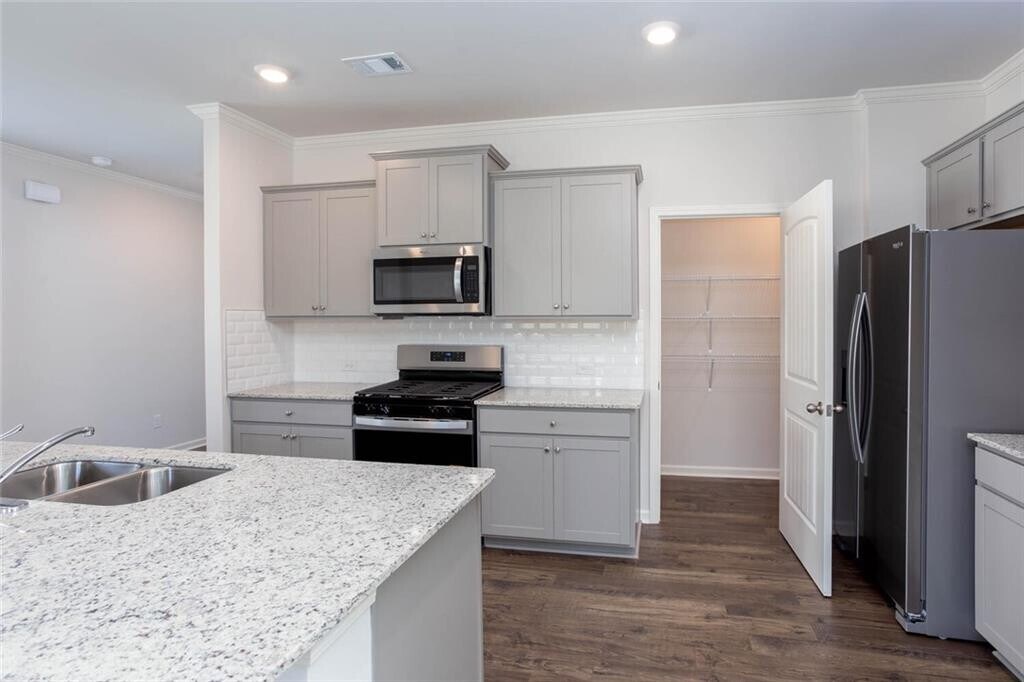Welcome to 77 Grove Springs Ct,Cartersville,GA – Park Side at Carter Grove. This brand-new floorplan offers 4 bedrooms,2.5 bathrooms,and 2,174 sq ft of stylish,functional living space. The main level features an open-concept layout with a spacious great room and a modern kitchen equipped with gray shaker cabinets,granite countertops,stainless steel appliances,walk-in pantry,and chef’s island. Durable laminate flooring throughout the main floor ensures easy maintenance. Upstairs includes a versatile loft area,three secondary bedrooms,a full bath with dual vanity,laundry room,and the private primary suite with a large walk-in closet,dual vanities,soaking tub,and separate walk-in shower. Additional features include a two-car garage,front porch,and scenic views. Located in a sought-after community with access to parks,schools,and more. EASY application process.