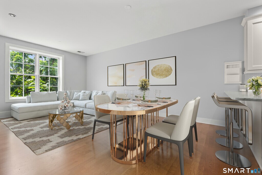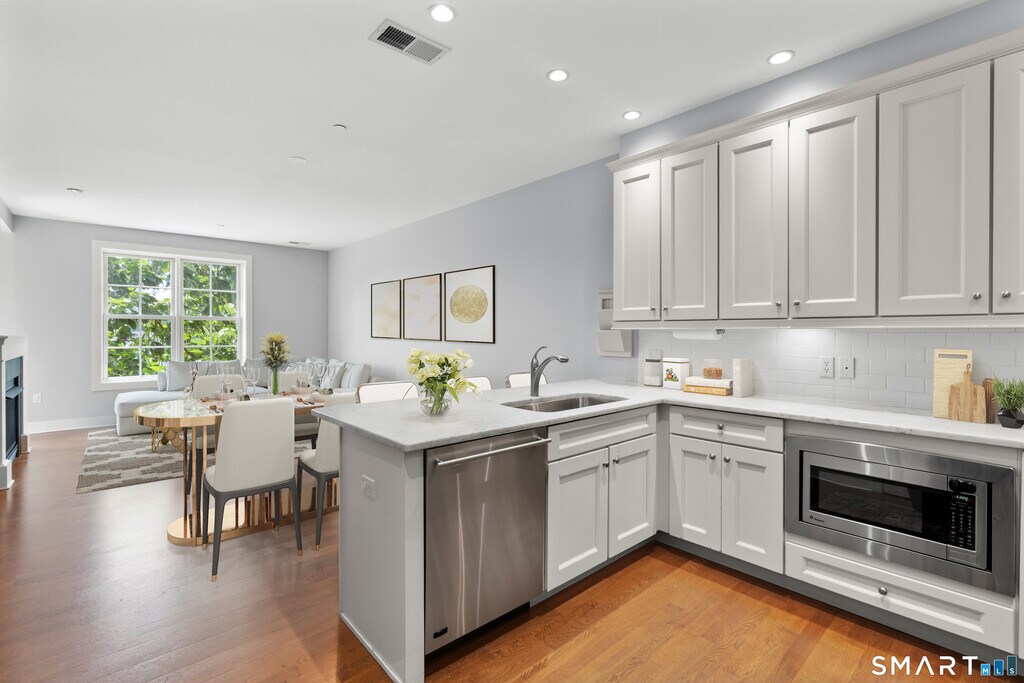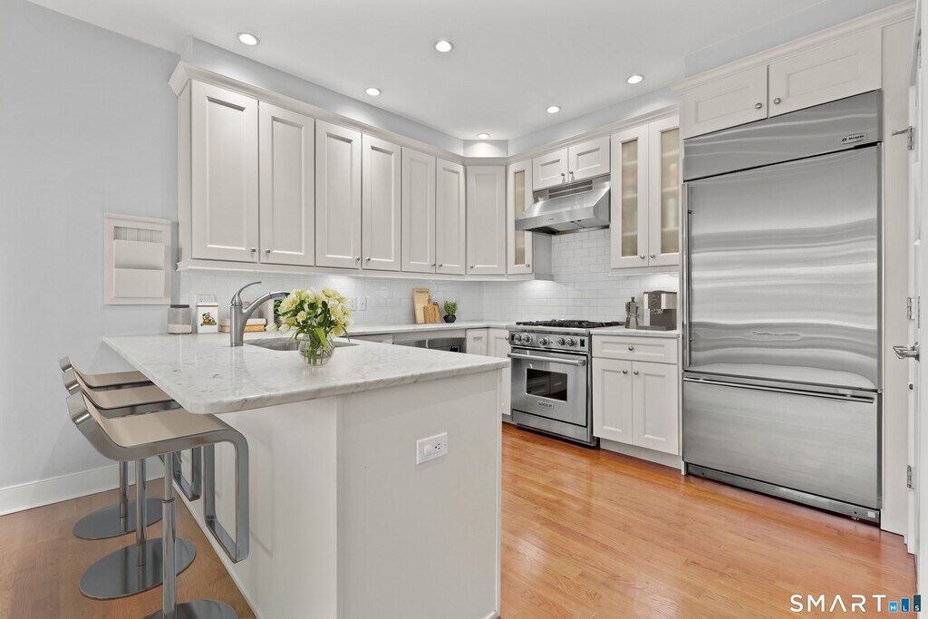 Call for Availability - Chic 2-Bed / 2-Bath Condo in Gated Palmer Hill - 77 Havemeyer Ln Unit 313. Welcome to this stylish, turn-key 2-bedroom, 2-bathroom condo in the coveted gated Palmer Hill community - a perfectly located home in Stamford that blends comfort, convenience, and a touch of resort-style living. With about 1,100 sq ft of thoughtfully designed space, this unit delivers both everyday ease and elevated finishes. Step inside to a bright, open-plan layout where the gourmet kitchen - complete with stainless steel appliances and marble or quartz countertops - flows seamlessly into the dining and living areas. The living room easily doubles as an entertaining hub or cozy retreat, and sliding out onto your private balcony takes relax at home" to the next level. The primary suite is coupled with a roomy walk-in closet and a full bathroom featuring double-vanity, whirlpool/shower setup, and direct access to the balcony. Access to all Palmer Hill amenities including pool, club house, exercise room, hot and under garage parking." MLS# 24143000