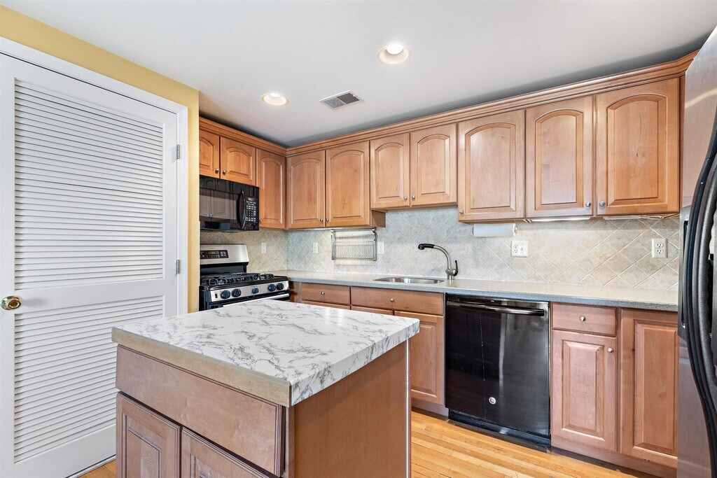 Exceptional opportunity to live in a lovingly maintained furnished or unfurnished two bedroom, two bathroom with a private balcony and garage parking for one car in downtown Hoboken. Residence 8 at 77 Jefferson Street is remarkable for an incredible open-concept living, dining and entertaining area that is enlivened by an updated kitchen with raised panel millwork and a full suite of stainless steel appliances. This area contains ample room for work-from-home spaces as well access to a covered private balcony perfect for year-round use. The primary bedroom suite offers an expansive walk-in closet as well as a private bathroom with dual vanity. The second bedroom, located on the opposing end of the home, offers great closet space and easy access to an updated spa-inspired bathroom. Life at home is further enhanced by fantastic storage, an in-residence washer/dryer and access to a lovely common yard and seating area in the rear of the building. Residence 8 is three-and-a-half blocks to the NJ Transit express bus to New York City and an easy twelve minute stroll to Hoboken Terminal (PATH, NY Waterway Ferry, Light Rail, NJ Transit). 77 Jefferson Street is an eight-residence boutique condominium that is easily accessible to the best shopping, restaurants, grocery stores, coffee shops and entertainment in town. 1.5 month security deposit. Available 11/1. $250 move-in fee due to condo association.