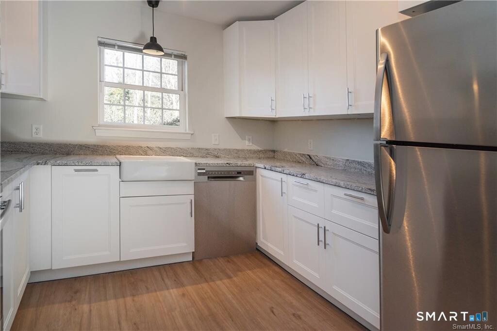 Call for Availability - Recently renovated luxury townhome end unit apartment for lease. All new coastal grey laminate flooring. White custom kitchen cabinetry and granite counter tops. Kitchen, family room and one bedroom with ensuite full bath on Main level. Half bath on main level. Upper level has one bedroom with ensuite bath. Fabulous location directly across the street from the Lyme Art Academy on Keller Way. Set well back from the road for great privacy. Only a total of 12 units--six in each of two buildings. Just minutes from shopping, highways, marinas, beaches and all the shoreline has to offer. Please call for a tour! MLS# 24146023