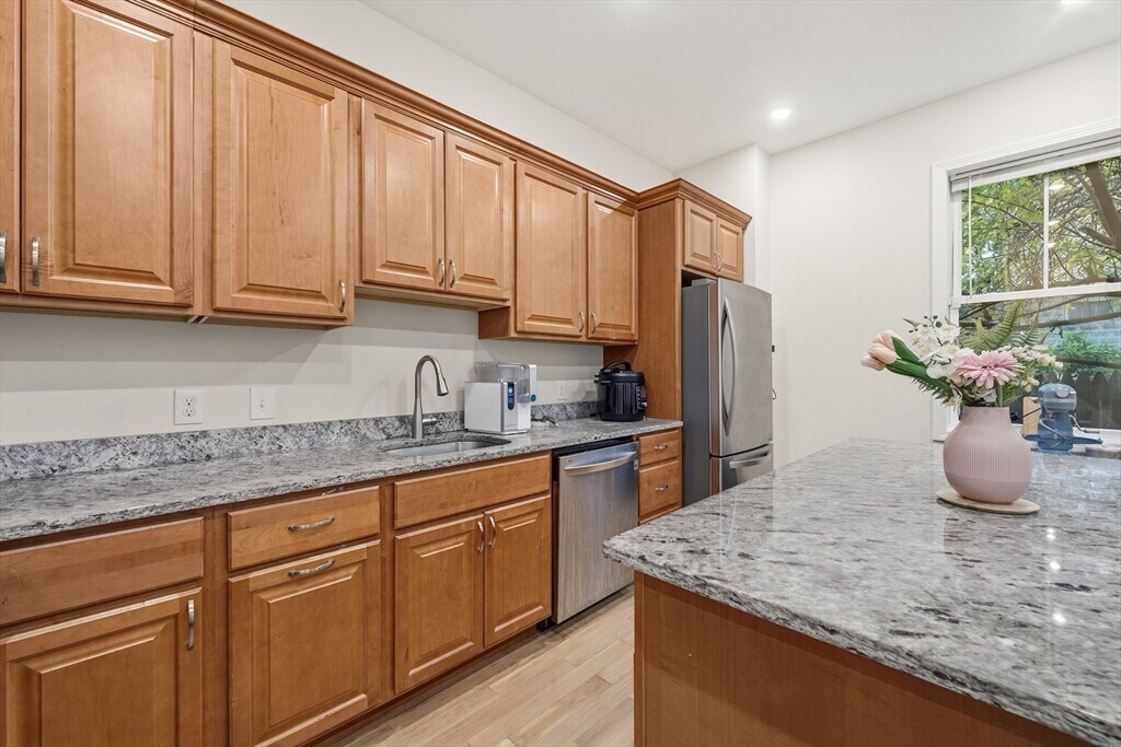 Welcome to 77 North St! This Townhouse is part of a 2 unit building that was newly constructed in 2016. As you arrive,there are two off street assigned parking spots to the left of the building,on the left of the parking lot. Once you enter the unit,you will notice the high ceilings,hardwood floors and recessed lights controlled on dimmers with Lutron Smart Switches. This floor has your living room,half bath,and eat in Kitchen featuring quality wood Cabinets,Granite Counter tops,and stainless steel appliances. In the lower level you have additional space for your needs. This is where you will find the laundry equipped with Brand New Units. Upstairs you will find two bedrooms and your first Full Bathroom. All the bedrooms can fit king sized beds if needed and comes with ample closet space. The top floor has your third bedroom and second full bath as well as a roof deck. The unit has been well maintained by the owners and has central heat and cooling. MLS# 73450370