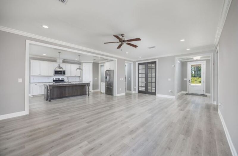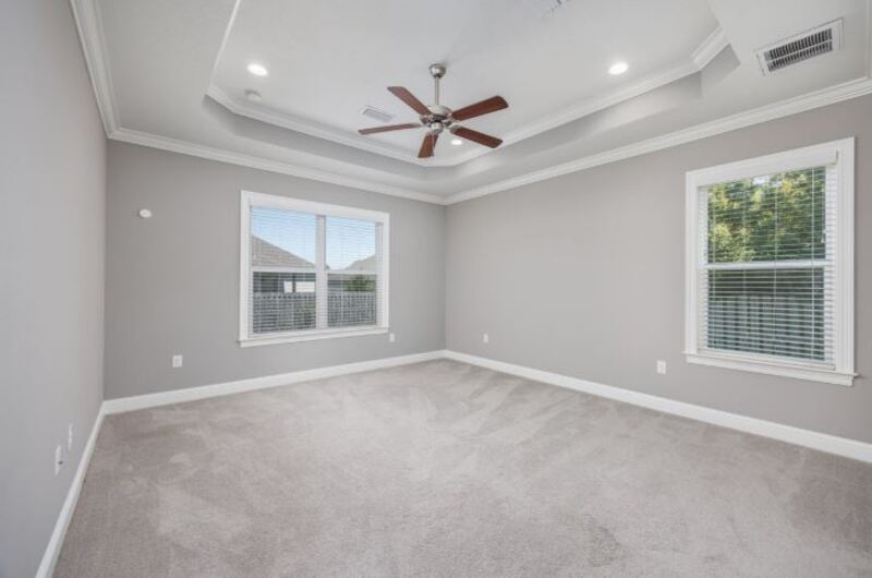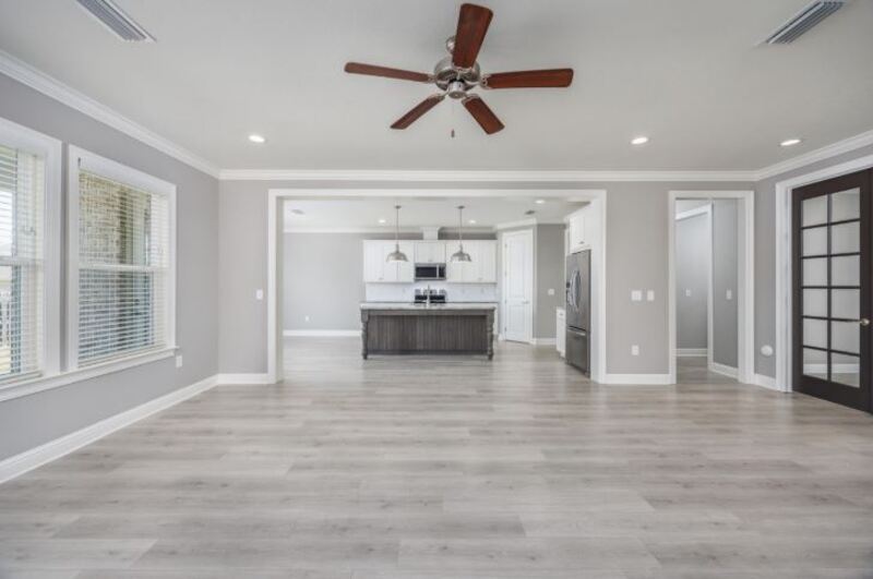 This spacious and well-built home offers over 2,576 sq ft of thoughtfully designed living space on a desirable corner lot in the Ashton Park community in Freeport, Florida. The home includes 4 bedrooms, 2.5 bathrooms, and a rare 3-car garage, providing excellent space for parking and storage. The open-concept floor plan welcomes you into a large living area that flows into the kitchen, which features stainless steel appliances, a granite island, soft-close cabinetry, recessed lighting, and generous pantry storage. An additional bonus room with tempered-glass French doors offers flexible living space that works well as a home office, media room, play area, or secondary living room. The primary suite is designed for comfort and includes tray-ceiling details, a soaking tub, a walk-in shower, dual vanities, and a spacious walk-in closet. Added design characteristics throughout the home include crown molding, tray and coffered-ceiling accents, a functional mudroom with built-in cubbies, and pull-down attic stairs for convenient storage access. Outdoor features include covered front and rear porches, a fully fenced backyard, an automatic sprinkler system, and durable brick exterior finishes that support easy, low-maintenance living. Located in a growing community that balances neighborhood privacy with strong accessibility, this home is minutes from everyday shopping at Publix, local schools, dining, and entertainment, while also offering a central location near major surrounding destinations. The property is approximately 30 miles from Eglin Air Force Base and 42 miles from Hurlburt Field, making it a great fit for those connected to nearby military bases. Additional convenient access includes 30A beaches, South Walton shopping, Destin attractions, Panama City Beach, and regional airports. Combining exceptional size, thoughtful layout, and a prime location, this home is an ideal long-term rental opportunity. For showings, call us at .