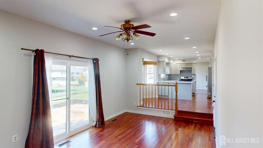 Beautifully updated and move-in ready,this 3-bedroom,2-bath home in Royal Brook Estates offers the perfect combination of space,comfort,and convenience. Set on a private 0.22-acre lot,the home features a bright and inviting layout with formal living and dining rooms,ideal for both everyday living and entertaining. The remodeled eat-in kitchen showcases shaker-style cabinetry,quartz countertops,and stainless steel appliances,opening seamlessly to a warm family room with a fireplace. Sliding doors lead to a large stone patio and a fully fenced backyardperfect for outdoor enjoyment. Upstairs,the spacious primary suite includes a walk-in closet and a beautifully updated en-suite bathroom. Two additional bedrooms share a fully renovated main bath. Hardwood floors,fresh paint,and newer windows enhance the home throughout. Additional features include a full basement for storage or flexible use,a two-car garage,and a private backyard setting. Prime location with easy access to Jersey Avenue Train Station,major highways,shopping,dining,and entertainment.