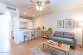 Welcome to this charming apartment community offering multiple 1-bedrooms,1-baths units available,with both upstairs and downstairs options to fit your preference. Each thoughtfully designed home is filled with natural light,creating a warm and welcoming atmosphere from the moment you step inside. Select downstairs units offer handicap accessibility.These residences feature open floor plans with beautiful hardwood plank flooring throughout,blending style with everyday durability. The kitchens are well equipped with a full-size gas stove,refrigerator,dishwasher,microwave,and garbage disposal,making daily living easy and convenient. Spacious bedrooms provide ample natural light and include generous walk-in closets for comfortable storage.Central heating and air conditioning ensure year-round comfort,while solar panels and all utilities included make living here effortless. Enjoy the feel of a small,friendly community that will soon be fully gated for added privacy and security. Residents also have access to a sparkling outdoor pool,an on-site laundry facility,and convenient off-street parking.Ideally located in central Tucson,this community places you close to shopping,dining,coffee shops,and entertainment,with nearby bus lines for easy commuting. The University of Arizona and downtown Tucson are just minutes away,offering endless options for work,school,and leisure.These beautiful apartments deliver the perfect balance of comfort,convenience,and lifestyle. We welcome all furry friends of any size! Photos shown are of similar units for reference.***Interior photos may be of a different unit in the same complex.*Please note: this home is unfurnished.**Photos may include virtual staging to illustrate potential room use.*