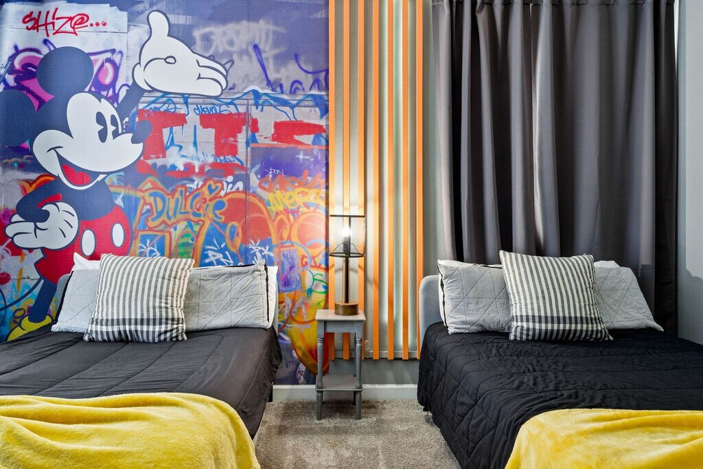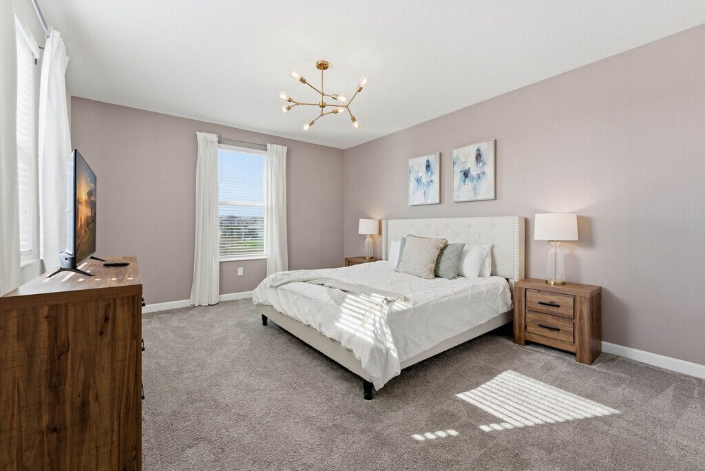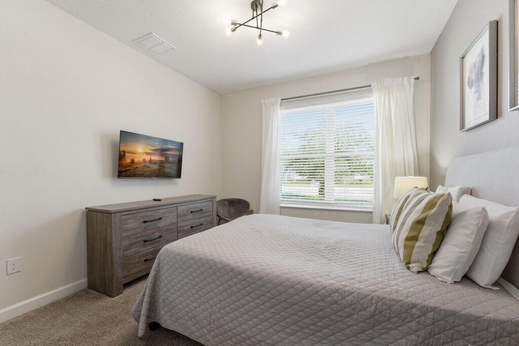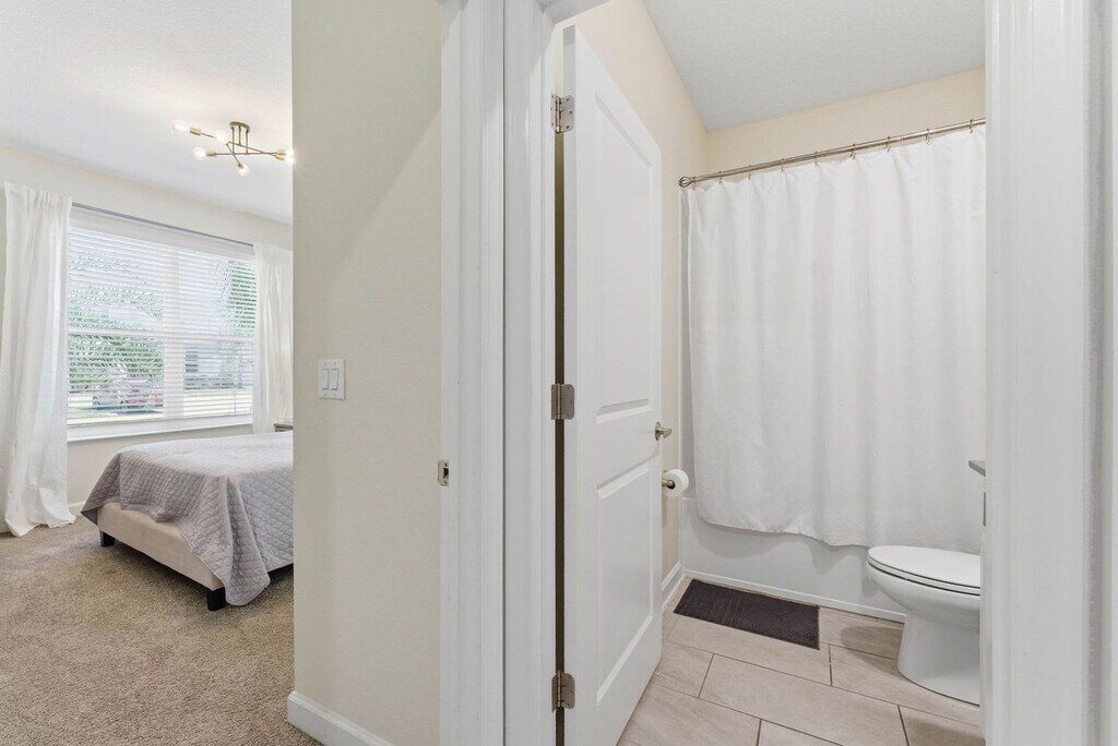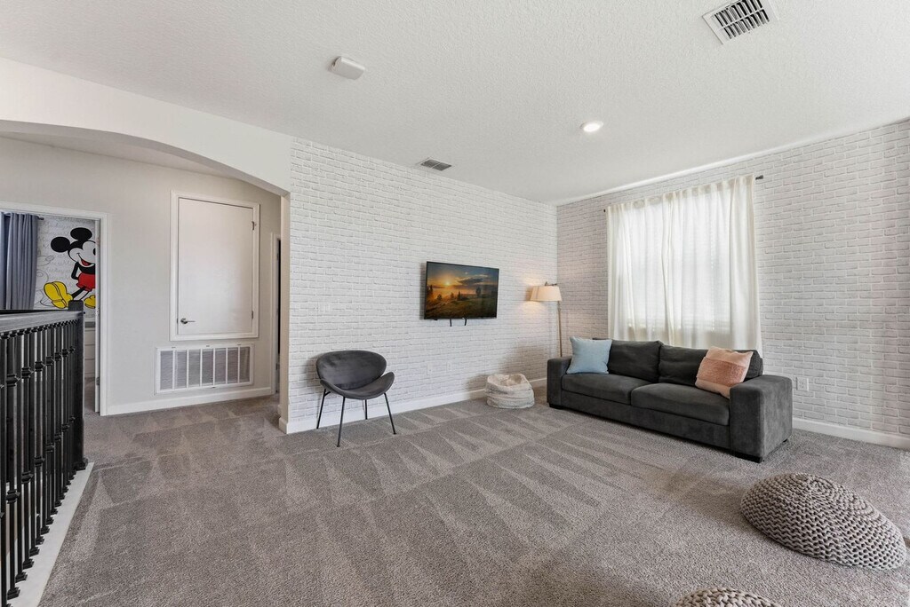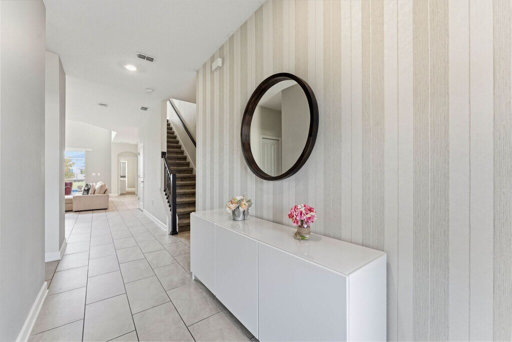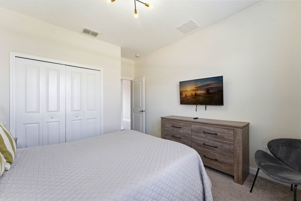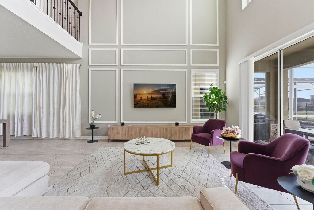 Feel at home in this spacious 5-bedroom, 5-bathroom home in Champions Gate, perfect for up to 14 guests. This home features an open-concept living space with a fully equipped kitchen, dining area, and lounge. Upstairs, you'll find a cozy family room. Additional features include a full laundry room with a washer and dryer, complimentary Wi-Fi, and a welcome kit with essential kitchen and bathroom items. Pool heating and a BBQ grill are available for an additional fee. Located in the Champions Gate Resort, you'll enjoy access to resort amenities including pools, a lazy river, splash zone, fitness center, and arcade. The resort is just 20 minutes away from Disney Parks, with shopping, dining, and supermarkets nearby. Quiet hours are between 10:00 PM and 8:00 AM. Smoking and pets are not allowed. [SI]