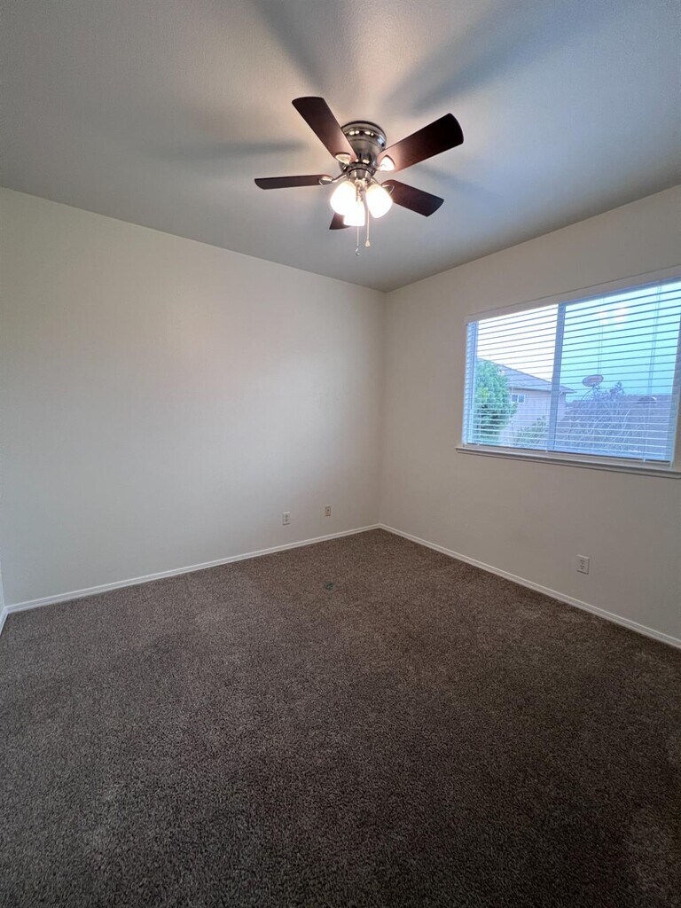 Cute 3 bedroom, 3 bathroom home in the prestigious European Grove gated community in North Clovis! Right off the entry you will find 1 bedroom and a downstairs bathroom with walk-in shower. Cozy living room with high ceilings, recessed lighting, fireplace and built-in cabinetry. The living room leads to a spacious dining area and an open kitchen with generous cabinet and counter space. There is a large pantry tucked behind the kitchen with an abundance of storage space. The upstairs features 1 bedroom with an attached bathroom, an indoor laundry room with utility sink (w/d appliance included as is), and the primary suite. The primary suite offers a walk-in shower, soaking tub, dual sinks and a walk-in closet. The backyard offers green landscaping and a covered patio. The HOA dues and yard service are included. Renters insurance is required. No pets, please. Available now!Note: This home is situated in an HOA with parking rules and regulations. Vehicles must be parked in the garage at all times. Street parking is not permitted.