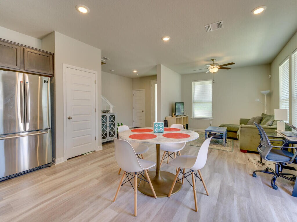 Wonderful & bright, corner lot home, open concept floor plan with great natural light. Gorgeous new vinyl plank flooring installed downstairs. Orange front door welcomes your Easton Park home. Located in the fantastic Easton Park master-planned community 12 miles south of downtown and a 7-mile drive to the airport. Community has ~13 Miles of walking and biking trails and this home is just down the street from The Union that has a pool, gym, picnic area, conference room, and so much more! Home has quartz kitchen counters, stainless steel appliances, backsplash perfectly coordinates w/luxury vinyl-plank vinyl floors w/dark brown cabinetry. Smart-home features: Ring video doorbell. Tankless water heater, blinds, washer/dryer and fridge. AVAILABLE NOW *Owner/Agent.* Easton Park is the community to live in!! *Owner/Agent* Owner Pays HOA, Property Taxes, and Home Team pest services of the exterior tubes in walls. Tenant is responsible for flowerbed, side yard and interior maintenance and must abide by HOA rules. Tenant has access to the Gym, pool and other facilities that are included in the community upon signing of lease. Tenant MUST maintain renters insurance and provide proof by adding the landlord as an additional insured. Pets negotiable. No Smoking. Best Qualified Applicant will be considered. Application fee is through Zelle and security deposit is 1 months rent that must be paid with certified check upon signing of lease agreement. Tenants must earn 3x gross income and good credit (negotiable) & rental history. No section 8. Parking 2 cars in garage or on Solari DR only.