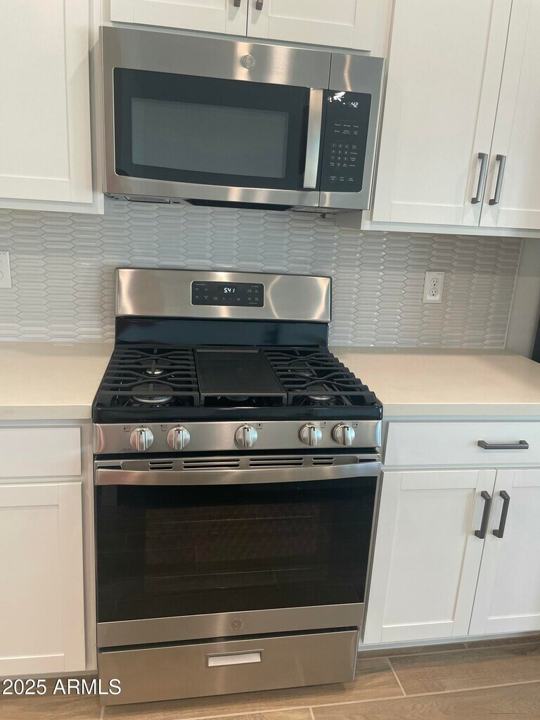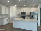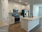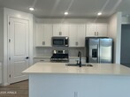 Brand new,move-in ready home in North Peoria's Retreat at Aloravita! This 3 bed + den,2.5 bath single-story offers a modern farmhouse exterior,desert landscaping,and paver driveway. The open layout features a spacious kitchen with large island,walk-in pantry,gas range,and stainless steel appliances. Upgrades include 42'' white cabinets,Carrara Breeze quartz,white mosaic backsplash,wood-look tile in all common areas,and black fixtures. 4-panel sliding glass door leads to the backyard for indoor/outdoor living. Epoxy-coated garage floors and ceiling fans just completed! Brand new single-story home in North Peoria's Retreat at Aloravita! This 3 bed + den,2.5 bath home with a 2-car garage is estimated for completion in July 2025. Located in a highly desirable area,this home features beautiful farmhouse-style curb appeal with front desert landscaping and a paver driveway. Inside,enjoy an open-concept layout perfect for entertaining. The kitchen includes a large island,walk-in pantry,stainless steel appliances with a gas range,and elegant finishes from the Harmony Palettefeaturing 42" white cabinets,Carrara Breeze quartz countertops,white mosaic backsplash,and 6x36 wood-look plank tile in all common areas. Black plumbing fixtures add a modern touch throughout. The great room features a 4-panel sliding glass door that opens to the backyard,perfect for indoor/outdoor living. The spacious primary suite offers a private retreat with beautifully appointed details.
