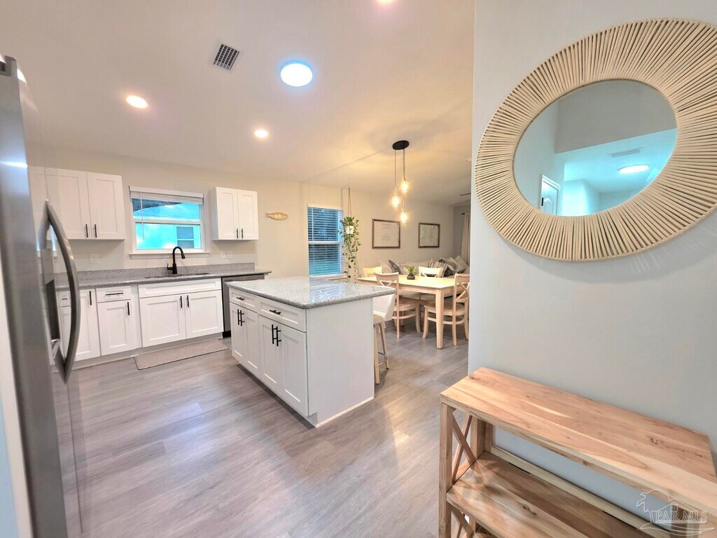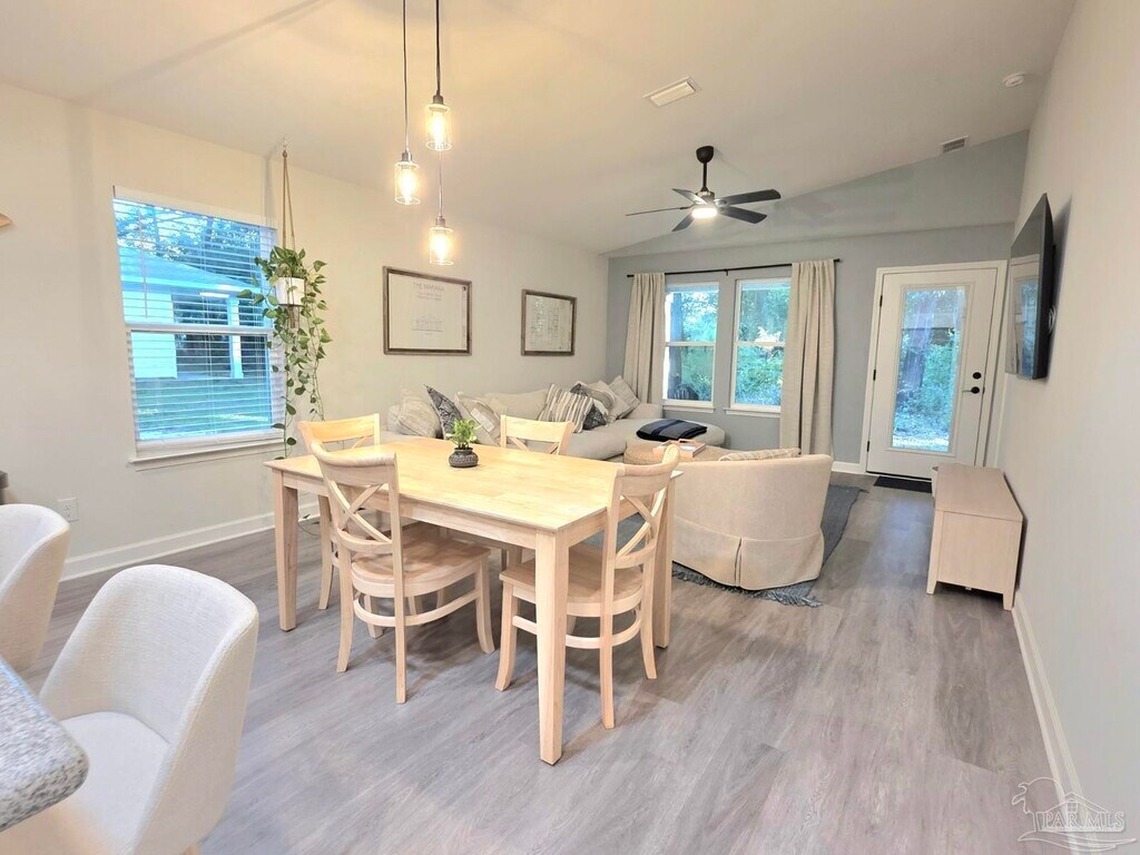Perfect blend of style,comfort,and convenience in this newer,beautifully designed 3-bedroom,2-bath home. From the moment you pull into the driveway,you’ll feel the welcoming warmth this property offers. Open-concept living area filled with natural light and vaulted ceilings that enhance the airy,inviting atmosphere. The modern kitchen steals the show with granite countertops,stainless steel appliances,and plenty of cabinet and prep space. You’ll love the luxury vinyl plank flooring that runs throughout the home. The split floor plan provides privacy,with a roomy primary suite featuring a walk-in closet and private bath,while the additional bedrooms offer flexibility for family,guests,or a home office. Outside,enjoy a peaceful setting with a shaded yard—ideal for cookouts,pets,or relaxing with a cup of coffee on the patio. The attached garage offers extra storage and easy access,making daily life a breeze. Located just minutes from NAS Pensacola,downtown Pensacola,and a variety of shopping,dining,and recreation options. Pets allowed with owner approval and pet screening. Apply online; $75 application fee per adult; half off for active-duty military; subject to credit check,background check,rental verification and income verification; certified funds required for move-in.