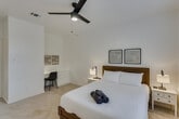 Feel at home in this luxurious and spacious 5-bedroom, 3-bathroom home in North Richland Hills. This elegant retreat offers comfort and style, providing everything you need to unwind and explore the city. This home features a designer kitchen with top-of-the-line appliances, a cozy living room with a gas fireplace, and five generously sized bedrooms, including a luxurious master suite with a soaking tub and walk-in shower. Step outside to your own private pool and soak up the Texas sun. A baby crib is available. You'll also find a washer and dryer for your convenience. Complimentary parking is available in the garage and driveway. An additional nightly rate applies for parties of more than six guests. Centrally located near local restaurants, shops, and top DFW attractions like the Fort Worth Stockyards, Sundance Square, and the Fort Worth Museum of Science and History, this home offers both convenience and comfort. The home is nestled in a quiet, upscale neighborhood in North Richland Hills, surrounded by beautiful homes and scenic views. Out of respect for the neighbors, please keep noise levels low, especially during evening hours. Parties or large unauthorized gatherings of any sort are not allowed at the property. Pets are welcome with a non-refundable pet fee of $150 per pet, with a maximum of two pets per stay. The home has a noise alert device that measures decibels and sends alerts if reasonable noise levels are exceeded. No street parking is allowed due to City Parking Regulations. The maximum number of cars allowed are two cars in the garage and two cars in the driveway. Registration Number: SFRENT-0325-2292 [SI]
