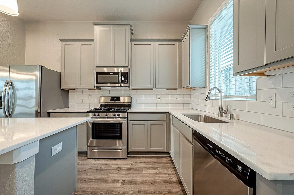 LUXURY TOWNHOME w/ NO SHARED WALLS!!! Gated Community w/ a PRIME LOCATION; 5 mins to I-10 & 10 mins to Beltway 8! OPEN CONCEPT! 8’ Doors at 1st Floor, Spacious Kitchen with 42” Modern Grey Cabinets + Luxury Quartz Countertops + Modern 3D Subway Tile Backsplash + Stainless "Farmhouse" Single-Bowl Sink + Stainless Frigidaire Dishwasher, Vented Microwave & 5-BURNER GAS RANGE + SS Refrigerator! Wood-like Flooring throughout (NO CARPET)!. Extra-Large Master Suite that boasts a HUGE walk-in Closet, 36" Cabinets w/ Double Sinks + Luxury Quartz + Large soaking Garden Tub with Arm Rests & Sep. Shower w/ DOUBLE SHOWER HEADS & Shampoo Ledge! Luxury Quartz at Bath 2! Smart-Home Package! Washer & Elec. Dryer, 2” Faux Wood Blinds, Garage Door Opener, 16 SEER Lenox Air System, In-Wall Pest Defense System & much more!