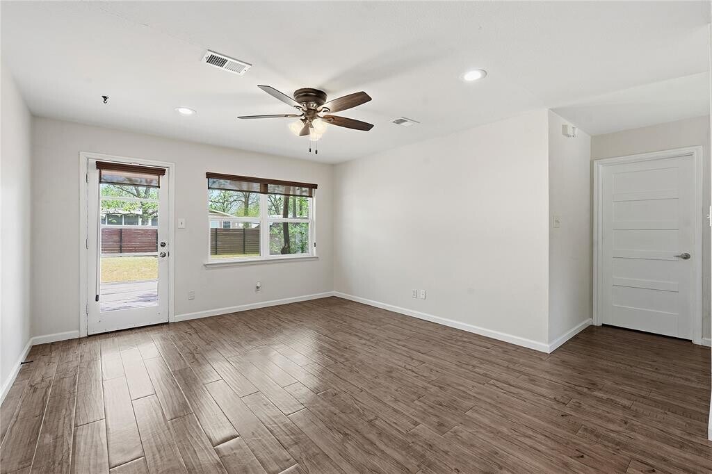 Positioned in a quiet pocket of Crestview, this thoughtfully updated single-story bungalow offers 1,449 square feet of well-designed living space with three bedrooms and two bathrooms. The layout is both functional and flexible with an eat-in kitchen that opens to the main living area and an additional flex space just off the kitchen, perfect for a home office, secondary living area, or playroom. The kitchen features granite countertops, ample cabinetry, updated appliances, and a refrigerator, creating a practical and inviting space for daily use. Interior finishes include wood-look luxury vinyl plank flooring throughout the main living areas. The primary suite includes a walk-in shower with glass enclosure, Grohe fixtures, and body sprays, along with quartz countertops at the vanity. The secondary bathroom features a Kohler soaking tub with armrests and a marble tile surround. A large laundry room with washer and dryer included adds everyday convenience, while the carport provides covered parking. Internet is included. The backyard is generously sized and designed for usability, complete with a deck and storage shed, offering space to relax, entertain, or accommodate additional storage needs. A sprinkler system services the front yard for easy maintenance. Located just minutes from Burnet Road, Anderson Lane, and major thoroughfares including Mopac and 183, this home provides quick access to The Domain, Downtown Austin, and major employers, along with a wide range of nearby dining, retail, and entertainment options. Zoned to Brentwood Elementary and set within one of Central Austin’s most established neighborhoods, this lease offers a balanced combination of location, functionality, and updated interior features. MLS ID 7915656
