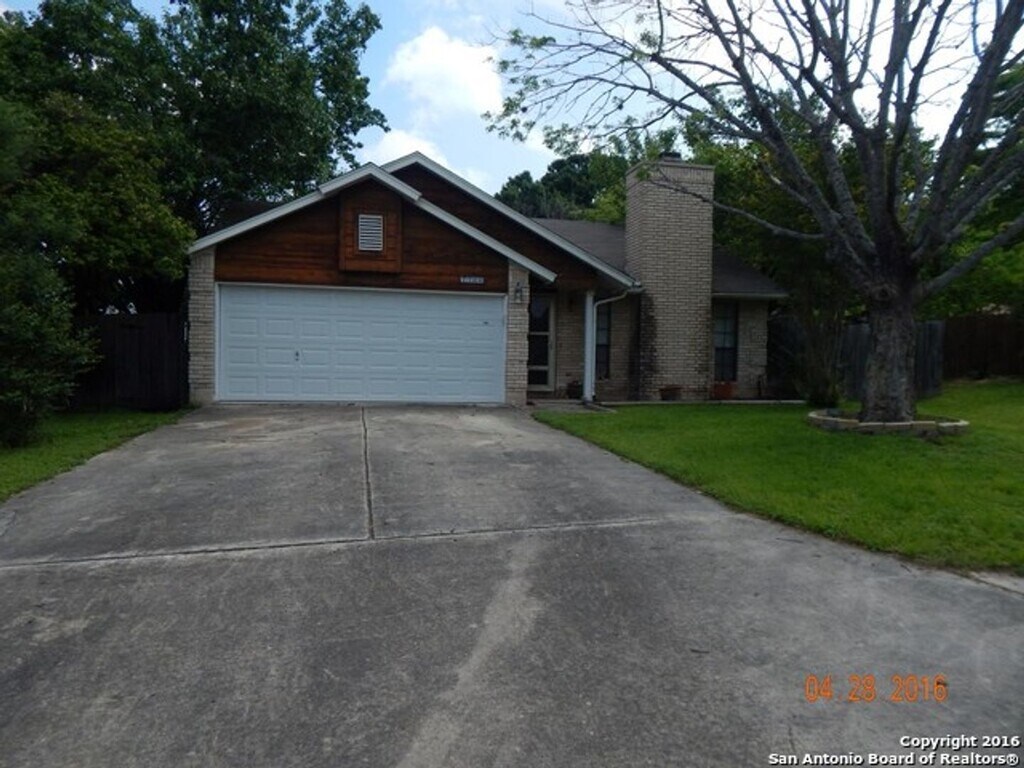 Located in the well-established Apple Creek subdivision, this cozy one-story home offers comfort and space. The living area features ceramic tile, high ceilings, and a floor-to-ceiling brick fireplace that creates a warm focal point for relaxing evenings. A formal dining room provides the perfect setting for gatherings, while the kitchen offers ample cabinet and countertop space for everyday cooking and entertaining. The primary suite includes a sitting area ideal for reading or unwinding, along with a ceiling fan for added comfort and carpeting. The en-suite bath features a double vanity, tub/shower combo, and a walk-in closet. Step outside to an oversized backyard with mature trees, a privacy fence, and a patio slab ready for weekend barbecues. Conveniently located near major highways, USAA, the Medical Center, UT Health Science Center, shopping, and dining. **Make ready to be completed!!
