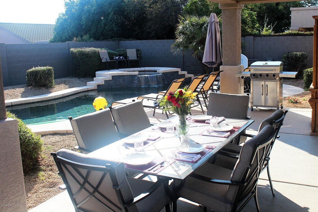 YOU WILL LOVE THIS IMMACULATE REMODELED HOME!!! LIST PRICE 5/01/23 - 10/31/2023 ONLY. LOCATED IN THE GREAT,QUIET,NORTH SCOTTSDALE FAMILY NEIGHBORHOOD PF GRAYHAWK WITH MILES OF WALKING PATHS,PARKS,LIGHTED TENNIS COURTS,LIGHTED BASKETBALL COURTS,LIGHTED SAND VOLLEYBALL COURTS,BASEBALL FIELDS. RESTORATION HARDWARE LIKE DECOR with ALL NEWER modern furnishings and artwork. Our Home has a very light and open floor plan with unique Gorgeous imported granite counter tops throughout. The spacious kitchen features ALL NEWER white shaker cabinets and elegant handles,large breakfast bar island with 4 bar leather adjustable stools,All NEWER GE stainless steel appliances,ALL NEWER silverware,plates,glasses,etc. The Extra Large Master Suite features a newer King bedroom set,newer Shower,bath,Dual sinks and 60 inch TV. The Private backyard features a sparkling HEATED POOL with waterfall & JACUZZI,lounge chairs,umbrella,pool toys and floats,covered Patio with outside dining and New Stainless Barbecue. ALL NEWER BEDS,BEDDING,3 Extra LARGE TV'S,WIFI,3 CAR GARAGE with elegant epoxy floor,Laundry Room with NEWER GE Washer & Dryer. Walking distance to several great restaurants,shopping,schools,Boys & Girls Club,Parks,Hospital. JUST MINUTES AWAY FROM WORLD CLASS GOLF AT TPC -Home of the PHOENIX OPEN,SILVERLEAF,D.C. RANCH & GRAYHAWK! DIAMONDBACKS SPRING TRAINING BASEBALL FACILITY,SCOTTSDALE AIRPORT,WESTWORLD- Home to Barrett Jackson Car Show & other major events,KIERLAND COMMONS,THE AQUARIUM,BUTTERFLY WONDERLAND ALL WITHIN 10 MINUTES DRIVE. INCLUDES water,sewer,trash,Internet,weekly pool maintenance,monthly landscape maintenance,propane for barbeque. Tenants to reimburse Owners for electric/gas.