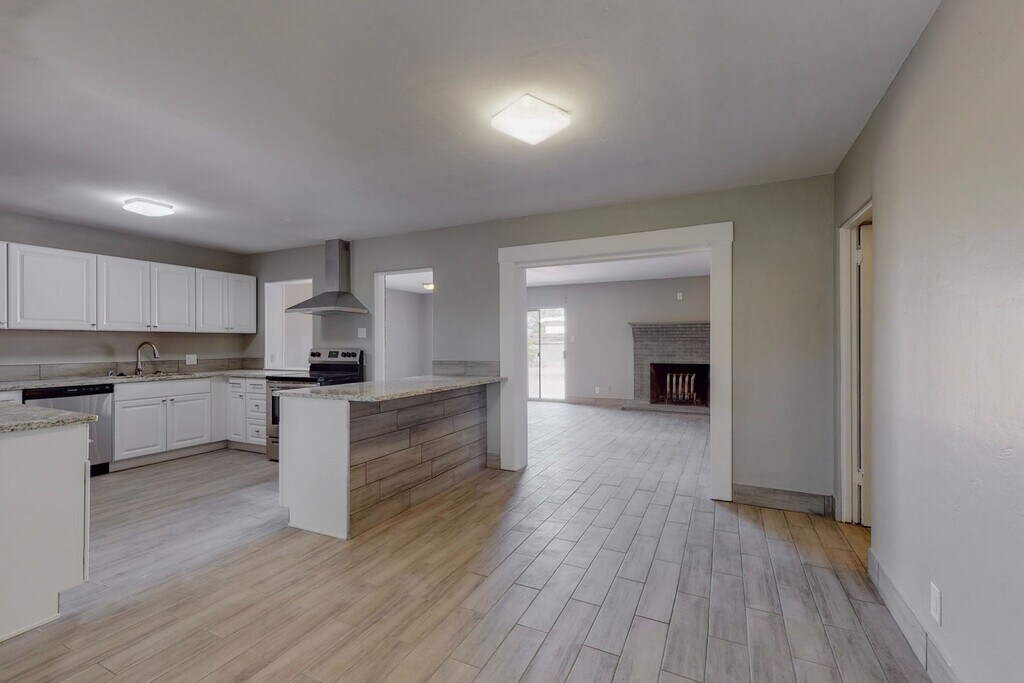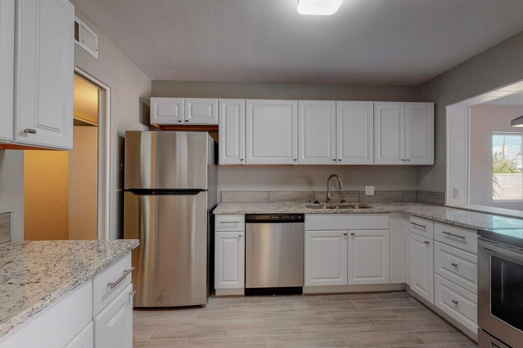 Lovely freshly renovated Ranch Style home 1894/SF living room with fireplace, open kitchen with breakfast bar, granite countertops, loads of cabinets, spacious dining, three large bedrooms, primary bedroom with 3/4 bath main bath in the hall, laundry area. Nice front and rear yards.. What a fabulous location! Restaurants, shopping of every kind convenient freeway access. No Smoking Please! Licensed well behaved Pet negotiable. Details application and info Virtual tour links:
