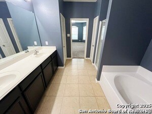 *** Move-in Special 2 Weeks Free Rent *** Reduced Rent $1795 for the 1st 6 months, then $1895 per month. 4 Bed 2.5 2256 sq ft Home with Low Maintenance Yard! Backyard is artificial turf, no mowing! Large Primary Bedroom downstairs with Ceiling Fan, Walk-in Closet. Primary Bath with Separate Shower, Garden Tub, Dual Sinks. All Tiles in the Living room, Dining and Kitchen. Kitchen with Granite Counters, Breakfast Bar, Walk-in Pantry. Appliances include Flat-top Stove, Microwave, Dishwasher. 3 Spacious Bedrooms and Full Bath upstairs. Fenced Yard with Covered Patio and extended Patio, and Large Tuff Shed. 2 Car Garage with Opener. Community Pool, Playground, Sports Court, Jogging Trail. Close to 1604, Hwy 211, Lackland, Shopping. Northside schools.