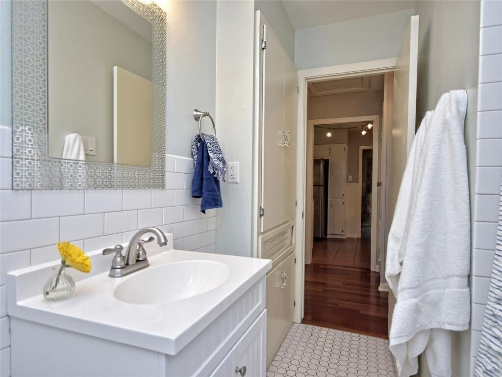 This thoughtfully updated bungalow features a spacious kitchen, dining, & living areas, 3 light-filled bedrooms & 1 remodeled bathroom. The home sits on a professionally landscaped .20 acre lot with mature trees, a garden, oversized covered patio & fully fenced backyard. Enjoy a backyard paradise for outdoor get-togethers on the massive deck with built-in outdoor fans. The backyard is perfect for watching a game with friends or having a relaxing outdoor dinner. Roof replaced in October 2025. Close to all that Crestview has to offer and easy access to MoPac, 183, Lamar, Burnet Rd and IH-35, you’ll love living in this centrally located bungalow.