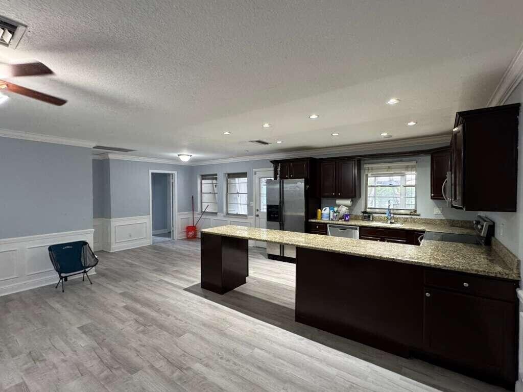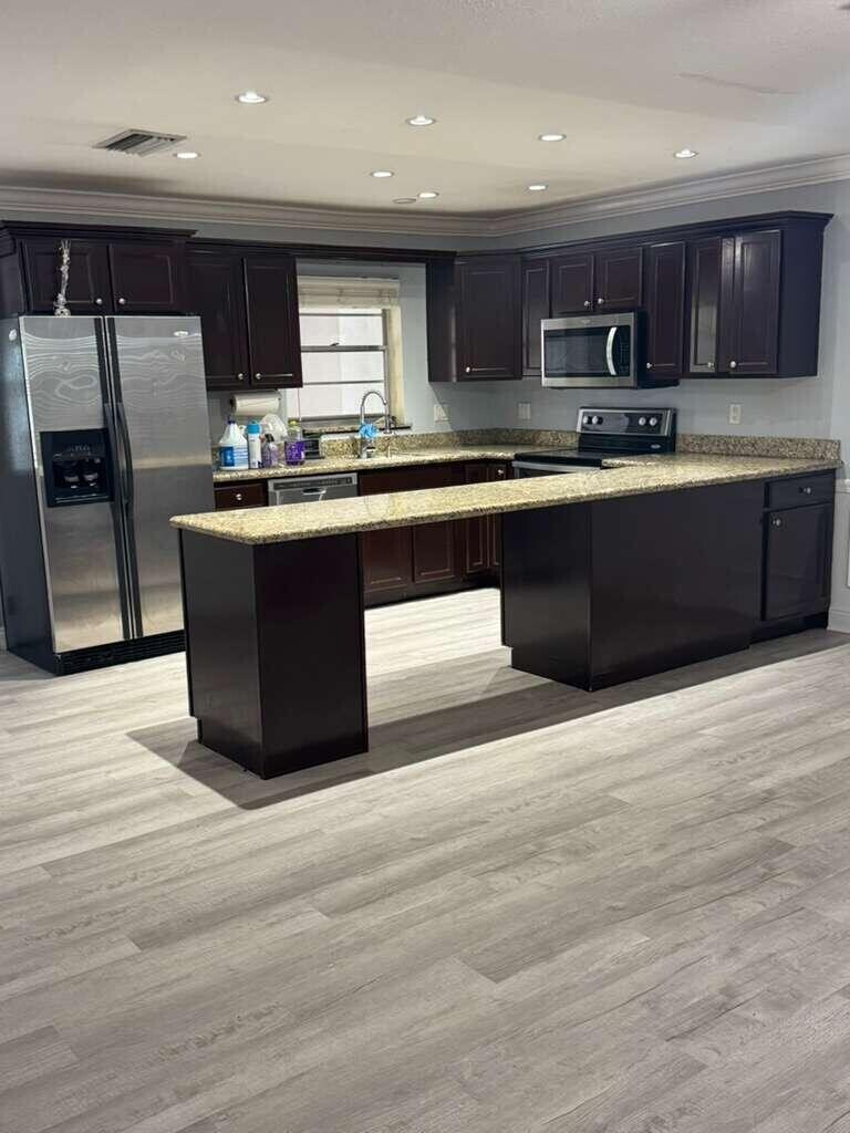 Welcome to this beautifully updated 2-bedroom, 3-bath single-family home. This open-concept layout boasts brand-new luxury vinyl plank flooring, elegant wainscoting accent walls, and a modern kitchen with granite countertops and stainless steel appliances. Recent upgrades include a new A/C system and tankless water heater for energy efficiency and comfort. Nestled in a quiet, family-friendly neighborhood, this home is just 8 miles from the beach, offering a perfect balance of convenience and tranquility
