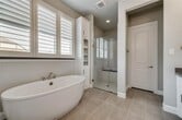 Gorgeous corner-unit home for lease in sought-after Craig Ranch, filled with natural light and featuring a spacious open-concept layout with modern interiors and upscale finishes throughout. The kitchen offers an oversized island, stunning quartz countertops, gas range, and ample space for everyday living and entertaining. The custom primary closet adds both style and functionality, while the private primary suite features a huge stand-alone soaking tub for a spa-like feel. Additional highlights include hardwood floors throughout except in guest bedrooms, gas fireplace, plantation shutters on the first floor, giant game room, EV charger in the garage, and a charming stone bench area. Enjoy walking trails and walkable access to Lifetime Fitness in the highly desirable Craig Ranch community.