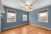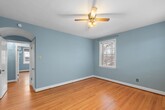Lovely second floor 2-bedroom duplex is ready for you! Just got pictures back for conveniently located home. Come on up through your own entrance to this lovely two bedroom home. Large living with decorative fireplace, proper dining space. Large kitchen with kitchenette. Newer windows throughout. Ceiling fan in the two spacious bedrooms. The natural wood floors just got skim coated and positively glow. Includes parking spot for one vehicle. Washer and dryer hookups in the tidy basement. Email me to view.