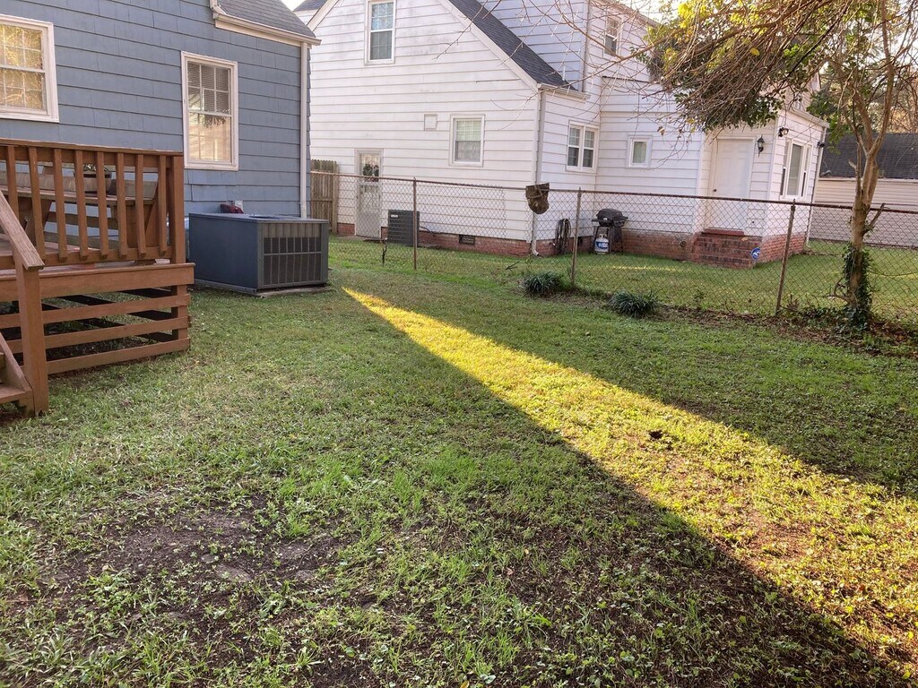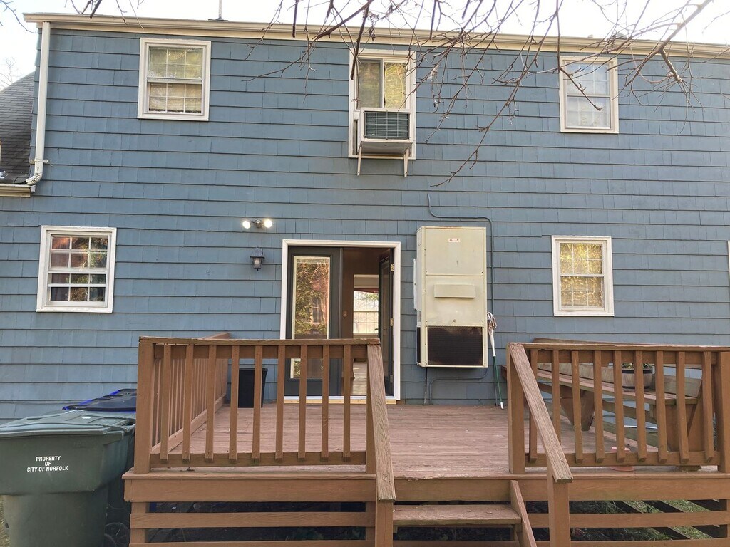 First floor unit of nice duplex. Hardwood floors throughout. Near military base, Interstate, Large deck, great storage space. Central A/C. Washer & Dryer as is.