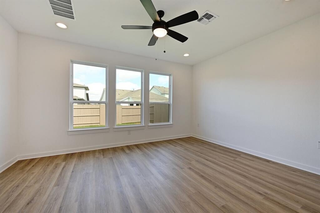 Welcome to this beautiful one story, four bedroom, three full bath home located in the highly sought after community of Easton Park. This home offers an ideal blend of modern design and functionality with a thoughtfully designed open floor plan and a private in law suite with its own ensuite bathroom. As you enter the home, you are welcomed by an inviting foyer with two spacious secondary bedrooms located at the front of the home, along with a full bathroom. Just beyond, and perfectly situated across from the oversized laundry room, is the in law suite, offering a generously sized bedroom and a private full bath, ideal for guests or multigenerational living. The home also features a large office or formal dining space that provides flexibility for working from home or entertaining. The kitchen is truly a chef’s dream, opening seamlessly to the expansive living room. It features high end appliances, abundant counter space, a large center island with breakfast bar seating, and a dining area. The primary bedroom is a private retreat, thoughtfully separated from the secondary bedrooms. It offers generous square footage, large windows, and a luxurious ensuite bathroom. The spa like bath includes dual vanities, a massive walk in shower with bench seating, and ample storage. Step outside to enjoy the oversized covered patio and large backyard, perfect for relaxing, entertaining, or future outdoor enhancements. Easton Park is known for its vibrant community and exceptional amenities. Located just 15 minutes from downtown Austin, residents enjoy easy access to parks, nature trails, shopping, and dining. The impressive 14,000 square foot amenity center features resort style pools, an outdoor workout and yoga area, office space with wifi, a music room, a kitchen, and a state of the art fully equipped gym. This home and neighborhood truly offer an incredible lifestyle.