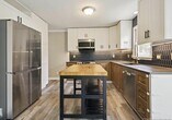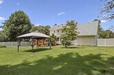 Spacious home features 4 bedrooms and 2.5 bathrooms. The main level includes a formal dining room and an eat-in kitchen, both accented with luxury vinyl flooring. The kitchen is equipped with stainless steel appliances, a ceramic tile backsplash, and a cedar fireplace mantle that adds warmth and rustic elegance to the living space. Additional features include a large, screened porch and a two-car garage.