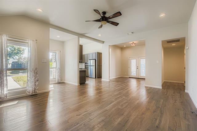MOVE-IN READY! Offering 3 bedroom, 2 bathroom with 1,563 sq ft of comfortable one-level living with an easy flow throughout. 7713 Salzburg has an open layout that centers around a cozy living room accented by a brick-front fireplace, while luxury vinyl plank flooring and recessed lighting provide a clean, modern feel. The kitchen features neutral painted cabinets, and all major appliances convey with the sale for added convenience. The primary ensuite sits on the opposite side of the home from the secondary bedrooms and includes dual sinks, a walk-in closet, and a private water closet. All bedrooms come with ceiling fans, and the walk-in laundry room includes front-loading washer and dryer. Step outside to enjoy two patios, a covered outdoor space, and a fenced backyard. A rear-entry 2-car garage and a water heater that is only 3 years old complete the package. Plus, you’ll love the easy access to Lakeview Parkway Hwy 66. Discounted rate options and no lender fee future refinancing may be available for qualified buyers of this home. Also for Sale