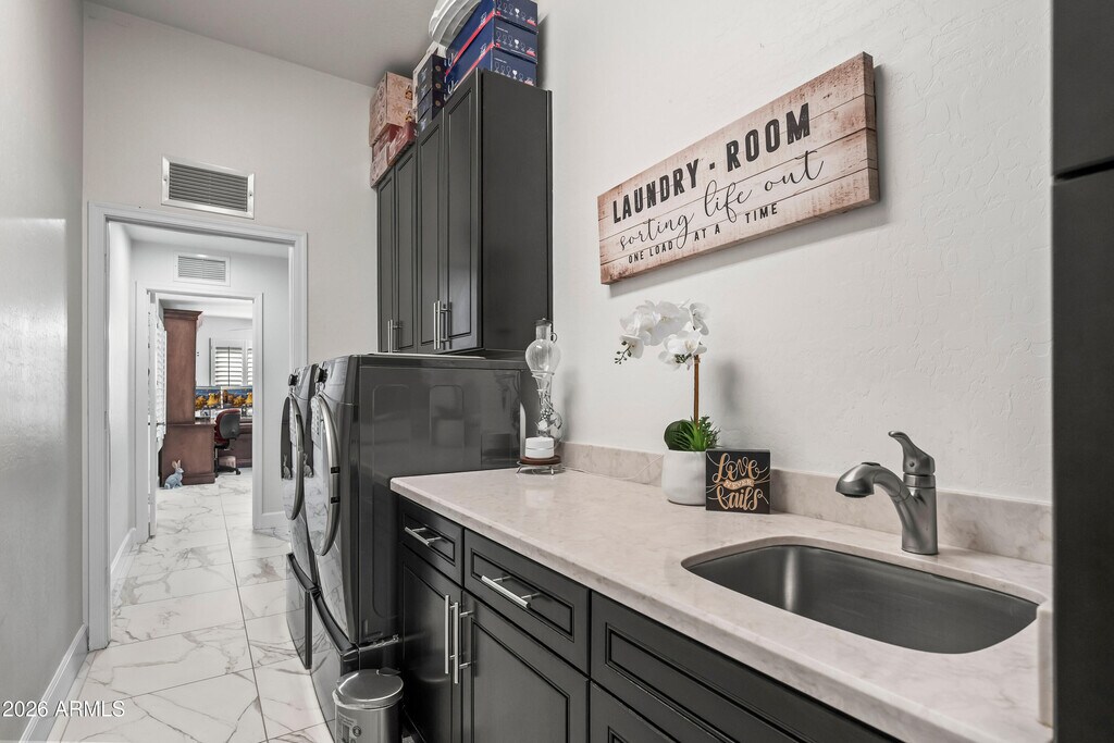 GRAYHAWK BEAUTY Welcome Home to Grayhawk. Discover this immaculate single-family home situated in the highly sought-after Grayhawk community. This residence has been fully remodeled,featuring designer touches throughout the interior. Enjoy the elegance of 24x24 Charma Calcutta flooring,complemented by stainless steel appliances and shaker-style cabinets. These cabinets,complete with pull-out drawers,offer effortless access and organization,extending even to the laundry room. Outdoor Entertaining and Relaxation This spacious four-bedroom home is ideal for those who love to entertain outdoors. The backyard boasts custom stone flooring and a grilling bar equipped with a refrigerator and ample storage. Unwind in the luxurious "Bullfrog" jetted spa while taking in the view of the expansive yard,adorned with artificial turf. The soothing sound of a stacked stone fountain creates a serene Zen environment. For added convenience,the landlord covers the cost of landscape and spa maintenance. Community Amenities and Location Benefits The Grayhawk master-planned community offers beautifully maintained walking paths and is home to the nationally acclaimed Grayhawk Golf Club. The location is perfect for all lifestyles,providing access to public and private schools,City of Scottsdale parks,a Boys & Girls Club campus,and a variety of upscale shopping and dining options. Additionally,a nearby medical campus adds to the convenience of this superb neighborhood. This property is currently interim occupied and is alarm activated.