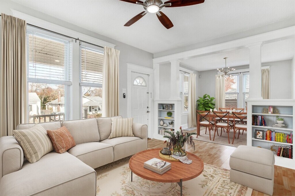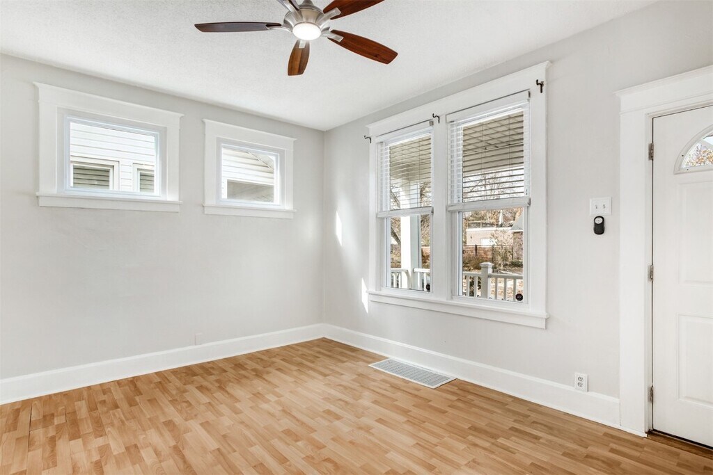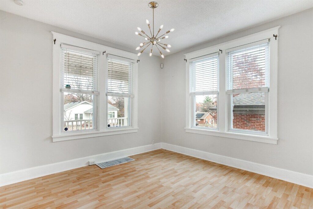 Charming & Ready to MOVE IN! This delightful 3-bedroom Richmond Heights bungalow sits on a quiet no-through street and a level lot with plenty of room to play—plus a fire pit zone made for cozy nights under the stars. The large, covered front porch is your new go-to spot for slow-start mornings and laid-back evenings. Inside, tall ceilings, original millwork, and built-in bookcases bring the character. The light-filled living room flows into a dedicated dining room ideal for hosting. The updated kitchen features tall crisp white cabinets, marble countertops, a built-in buffet for extra storage, a sunny breakfast alcove, and easy access to backyard for grilling and gathering. A main-floor bedroom and stylish full bath make everyday living comfortable and convenient. Head upstairs to find two additional bedrooms—one currently outfitted as a walk-in closet (can be removed to revert back to a bedroom)—plus a flex nook perfect for a reading retreat, home office, or yoga mat. The walk out basement offers plenty of storage and includes a full-size washer and dryer. All of this in a fantastic neighborhood close to beautiful parks, grocery, local restaurants, The Heights Community Center, and quick access to Hwy 64/40 and beyond. Available for a one-year lease—don’t miss the chance to make this your next home! Available immediately. Occupancy passed. Tenant screening.