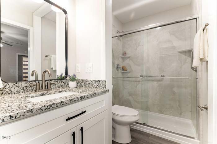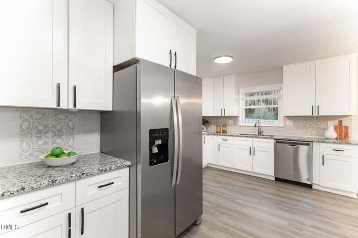 Fresh, Functional, and Full of Charm! This inviting 3-bedroom, 2-bath ranch offers comfortable single-level living in a prime North Raleigh location. The spacious open-concept living room, complete with a cozy fireplace, flows seamlessly into a beautiful kitchen featuring granite countertops and plenty of workspace. Recent updates include new carpeting, an added walk-in shower, new 6-foot privacy fencing on both sides of the home, and new gutters, all enhancing comfort, style, and curb appeal. Step outside to a large back deck, perfect for relaxing or entertaining while enjoying the peaceful, wooded backyard. Conveniently located just minutes from I-540, I-440, and Downtown Raleigh, this home combines tranquility with easy access to everything the area has to offer.