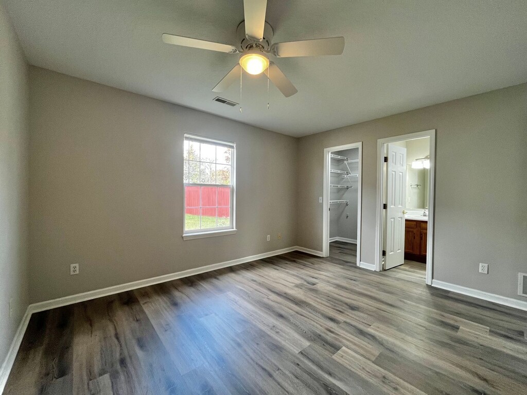 Here we have a cozy 3 bed, 2 bath ranch on a corner lot. Enjoy the lush private entry lined with shrubs. Vaulted ceilings in the great room give a spacious feeling while the fireplace adds warmth. The Kitchen features black appliances and a breakfast bar. Find quick access to the private patio and large raised deck through the dining room. Perfect for seasonal entertainment. The master suite includes a walk-in closet and full bath. Find an additional walk-in in one of the spare bedrooms. The second full bath provides plenty of counter space. This home features modern lighting and new LVP. Listed price contingent upon 2 year lease. 1 year lease subject to price change. Please call Capital Property Management at regarding inquires.