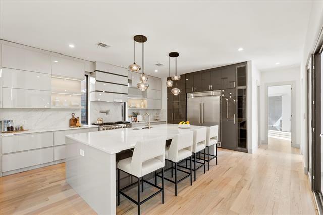 Luxurious home in Lovers Ln& Inwood Rd neighborhood. Walk to top-notch restaurants and shopping,minutes from Love Field, DNT and UTSW for ultimate convenience.Step into modern elegance with captivating stucco, sleek black windows,large sunroom,covered balcony and POOL. Embodies sophistication,comfort,stylish living wt a living room featuring sliding and expansive windows offering breathtaking views of the pool and modern fireplace wall wt a large fireplace.Entertainment becomes a breeze wt a spacious sun room, wet bar and balcony perfect for hosting and socializing.The stunning kitchen boasts lacquered european style cabinets,large quartz island,pantry and 48-inch range making it a dream space for culinary enthusiasts.The master bath offers a serene view of the bckyard and has a sizable bathroom wt custom closets.Main floor hosts office, guest room wt full bath, and custom closet. Upstairs, find a game room, wet bar area, media room, two bedrooms and large balcony with sliding windows.