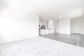 Built in 2021, this beautifully maintained 3-bedroom, 2-bath home offers a modern open-concept layout designed for comfortable living and entertaining. The spacious kitchen features granite countertops, elegant cabinetry, and a full appliance package including a range, seamlessly flowing into the main living area with luxury vinyl plank flooring throughout. The private primary suite is thoughtfully positioned at the rear of the home, offering separation from the secondary bedrooms. It includes a walk-in closet and an en-suite bath with matching countertops and cabinetry for a cohesive, upscale feel. Additional highlights include central HVAC with a programmable thermostat, a 2-car garage, and a generously sized, fenced backyard with a wooded backdrop—perfect for outdoor entertaining or relaxing in privacy.