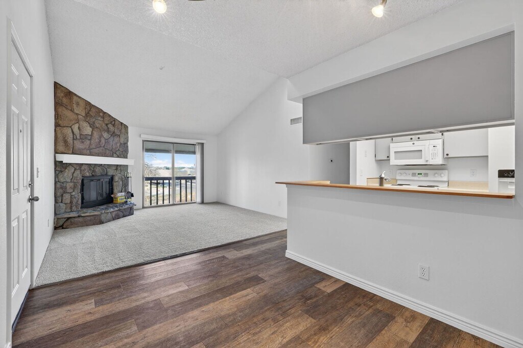 Welcome to this beautifully updated 2-bedroom, 1-bath home featuring an open floor plan filled with natural light. Enjoy brand new carpet, fresh interior paint, and updated flooring throughout. The spacious living area includes a cozy fireplace and opens to a private balcony—perfect for relaxing or entertaining. This home also offers the convenience of an in-unit washer and dryer, plus two reserved parking spaces. Residents have access to a seasonal community pool and tennis courts, adding to the lifestyle appeal. Great location! Close to shopping, restaurants, and major highways. Shown by appointment only - message today to schedule your own private showing. Credit, background, employment and rental history will be verified. Application fee- $50 for anyone 18 years or older. No smoking or vaping of any kind. Rent - $2095 Deposit - $2095 One time admin fee - $250 Pet accepted upon a case by case basis. Pet deposit - $300, monthly pet fee - $35/month. Tenant gas, electric and renters insurance.