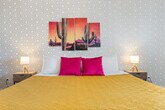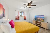 Feel at home in this spacious 6-bedroom house in Glendale, AZ, offering everything you need for an unforgettable vacation. With 3.5 bathrooms and ample space for up to 16 guests, this home is perfect for large groups or families. Enjoy the convenience of being a short drive from State Farm Stadium, West Gate Entertainment District, and various shopping and dining options. This home blends modern comfort with resort-style amenities, including a heated private pool, a fun-filled game room with a pool table and arcade games, and a dedicated workspace for those who need to stay connected. The fully stocked kitchen features high-end stainless appliances, a large refrigerator, and a Keurig coffee maker, making it easy to prepare meals for your group. Relax in the living room with a smart TV and plush sofas, or enjoy the spectacular backyard with a fire pit, BBQ grill, and ample outdoor seating. Dogs are welcome for a fee of $125 per stay, and parking is available in the driveway for up to 3 cars. The heated pool is available for $100 per night and can be heated to about 20-25 degrees above the ambient temperature, with a 3-day notice required before arrival. The pool must be heated for the entirety of your stay. Located near notable attractions such as State Farm Stadium, Westgate Entertainment District, and Desert Diamond Arena, this home is ideally situated for exploring Glendale. Enjoy nearby shopping at Tanger Outlets Phoenix or take a leisurely stroll through the Glendale Historic District. Dining options abound, with local favorites like La Piazza al Forno and Haus Murphy's offering a taste of the area's diverse cuisine. Check-in is at 4pm and check-out is at 10am. No parties are allowed, and violations may result in immediate termination of the stay. An exterior camera is installed solely to monitor the cleaning team for quality and security purposes. Guests must be 25 years or older to book this property. Includes a dedicated workspace for those who need to stay connected during their stay. [SI]