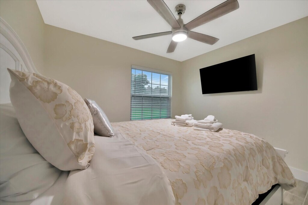 The advertised rate of $4,840/month is the lowest available price, based on a 1 month(s) stay with a move-in date of September 1, 2026. Rates vary depending on the duration of stay, season, and other parameters. For exact pricing and additional pricing components, please visit our website and enter your desired move-in and move-out dates. The rate is applicable when billed upfront; it can be higher if billed in multiple payments. Feel at home in this private Kissimmee getaway, featuring a screened pool and hot tub, perfect for family fun and relaxation. This spacious 4-bedroom home offers multiple living areas, allowing everyone to spread out. Enjoy a fully equipped kitchen, arcade games, consoles, and board games for all-day entertainment. The kitchen includes a full-size fridge, microwave, stove, oven, dishwasher, drip coffee maker, electric kettle, toaster, rice cooker, baking pans, a hand mixer, cookware, dishware, and utensils. Comfort and essential amenities include a washer and dryer, iron and ironing board, laundry baskets, and ceiling fans. There is also an outdoor fire pit, grill, and dining area for memorable nights together. Entertainment and recreation options include a foosball table, an arcade basketball game, Arcade1Up cabinets, board games, video game consoles, tennis rackets, and pickleball paddles. A high chair is available. Garage and driveway parking are available. Located in a quiet residential Kissimmee neighborhood with easy access to major roads, this apartment is about 15–25 minutes from Walt Disney World, 25–30 minutes from Universal Orlando, and 20–25 minutes from SeaWorld. It is also close to grocery stores, restaurants, and shopping within 5–10 minutes. Nearby attractions include Disney Springs, Old Town Kissimmee, and International Drive for dining, shopping, and entertainment. Orlando International Airport is about 30–35 minutes away. A digital rental agreement must be signed prior to arrival, including providing a photocopy of a legal ID and a verification selfie. Pets are not allowed, and unauthorized pets will incur a penalty of $400 per pet and possible cancellation of the remainder of the reservation without a refund. Smoking or vaping is not allowed inside the apartment, and if cleaners determine smoking has taken place, a $250 penalty will be charged. Quiet time is between 10 pm to 8 am daily. Unless requested and approved in advance in writing, lethal weapons are not allowed on the property, and a violation of this rule will result in immediate removal from the property along with no refund and a penalty of $250. [SI]