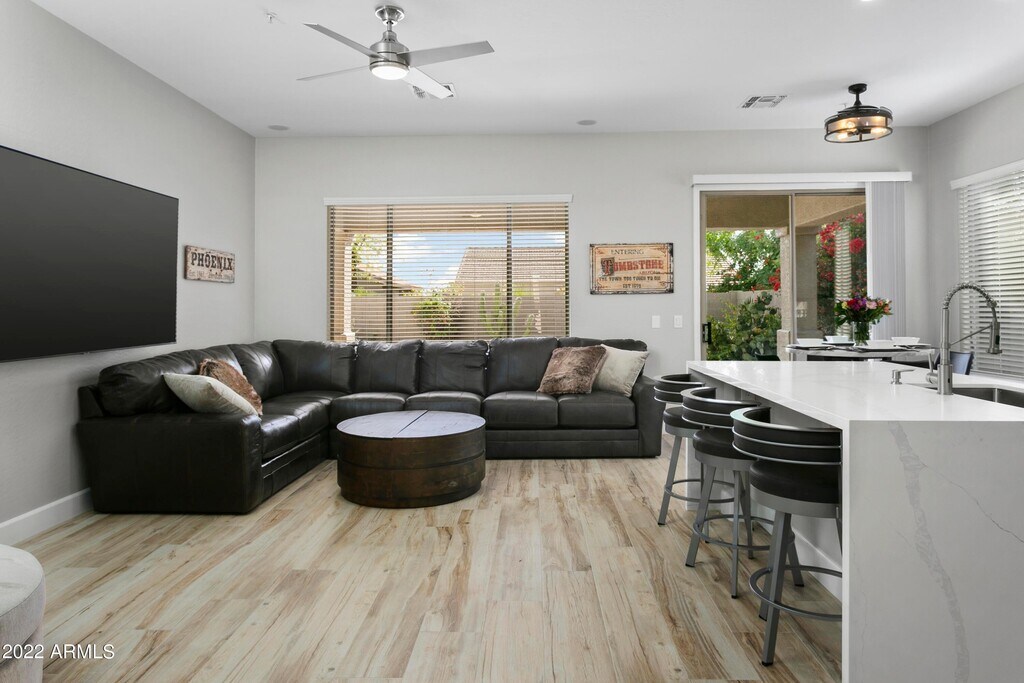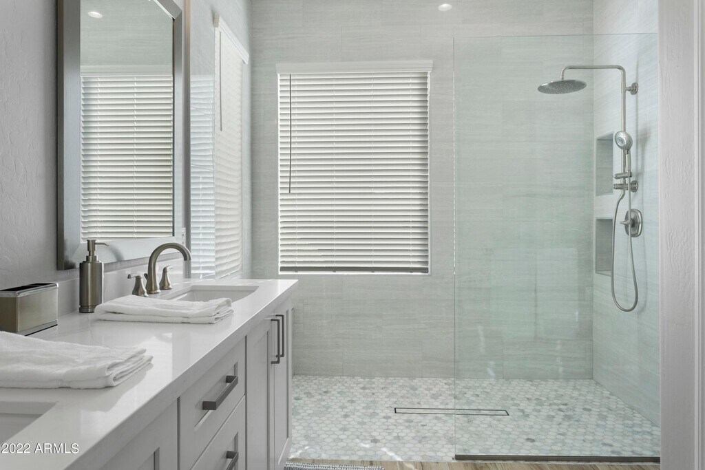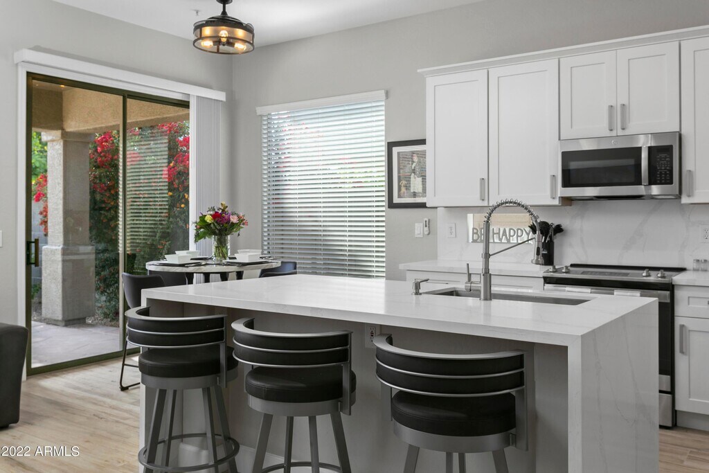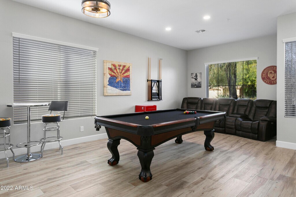 COMPLETE over $200,000.00 LUXURY REMODEL WITH EVERYTHING NEWER!!!! Remodeled in RESTORATION HARDWARE LIKE DECOR with modern furnishings. Home is on an interior N/S lot has a very open and light floor plan featuring gorgeous imported quartz counter tops,x large porcelain wood plank tile throughout and a game room with a professional pool table,Ping Pong,85 inch TV and Theater seating. The spacious kitchen features white shaker cabinets with elegant Schwinn handles,large breakfast bar island with 3 leather swivel stools,GE stainless steel appliances,silverware,plates,glasses,Keurig Coffee maker with built in frother,toaster,blender...etc. The Extra Large master bedroom features a king bed with leather sitting bench,chaise lounge chair,dresser,75 inch full swivel television,gorgeous walk in Shower with waterfall shower head & Dual vanity sinks. The Private backyard features a recently remodeled HEATED POOL with a waterfall & JACUZZI,4 pool lounge chairs,umbrella,pool toys and floats,covered Patio with outside dining table and Stainless Barbecue. ALL NEWER BEDS,BEDDING,3 Extra LARGE TV'S,WIFI,hallway bath with separate shower/tub and dual vanity sinks,3 CAR GARAGE,large Laundry Room with Heavy Duty LG Washer & Dryer. JUST MINUTES AWAY FROM WORLD CLASS GOLF AT TPC -Home of the PHOENIX OPEN,SILVERLEAF,D.C. RANCH & GRAYHAWK! SPRING TRAINING BASEBALL FACILITIES SCOTTSDALE AIRPORT,WESTWORLD- Home to Barrett Jackson Car Show & other major events,KIERLAND COMMONS,THE AQUARIUM,BUTTERFLY WONDERLAND ALL WITHIN 10 MINUTES DRIVE. Walking distance to several great restaurants,shopping,pickleball courts,tennis courts,Boys & Girls Club,Parks,Hospital. Bring your fussiest clients. They'll love this immaculate,all new Grayhawk remodel. List Price is 6/13/26 - 10/31/26 ONLY Includes water,sewer,trash,cable,internet,pool maintenance,landscape maintenance.