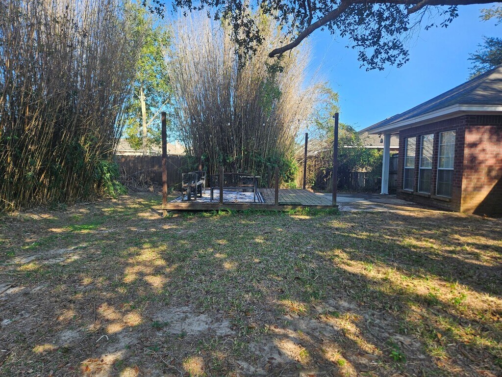 Absolutely stunning Executive 3 bedroom 2 bath home with high end appliances, tall ceilings, hardwood and ceramic floors and large privately fenced back yard on a corner lot. The covered front porch welcomes you with a beautiful hardwood front door with integrated combo door lock connected to the security system. A spacious foyer has a large mirrored closet for coats and storage. Walk into the huge living room with tray back lit customer crown molding. Adjacent is the dining room with large windows overlooking the huge fenced back yard. Dining room opens to a gorgeous kitchen with custom hardwood cabinets, new stone counter tops and a high end suite Samsung kitchen appliances. Walk thru the living room to get to the spacious Primary bedroom with back lit tray ceiling. This opens to a very large primary bath room with a double vanity, corner jetted tub with a skylight above, walk-n shower, private toilet and spacious walk-in closet. Go back across the living room where there are two more bedrooms on either side of the second bathroom. Across the foyer is the laundry room which includes a Kenmore Elite washer and dryer. The spacious double garage includes an alcove work bench with power for those small jobs. A side entrance garage is convenient and provides extra parking as it is at the end of the street. The privacy fence has a double gate for you to park your small boat. Hurry, this one won't last long.