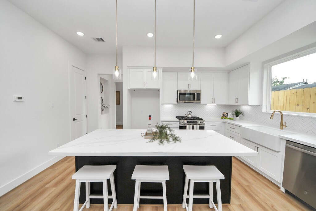 LAST UNIT! BRAND NEW construction home located in the highly sought after East End neighborhood! Enter to discover a contemporary 2-story home featuring an impressive open floor plan,upscale vinyl plank flooring,and a PRIVATE backyard. The neutral paint and oversized windows combined with the abundance of natural light make the interior features of the house look spectacular. Entertainment-ready,the gourmet kitchen has stainless steel appliances,quartz countertops,stylish cabinetry,a center island w/seating,a pantry,and a FARMHOUSE SINK. Upstairs boasts a spacious owner’s suite with BIG WINDOWS,a walk-in closet,and an ensuite owner’s bathroom with a soaking tub and upgraded double vanity. Additional bedrooms on the second floor feature private bathrooms!. Situated just minutes from DOWNTOWN with easy access to major freeways 45 and 69. ALL appliances included! Refrigerator,Washer & Dryer! Call to schedule a tour today! MLS# 32679689