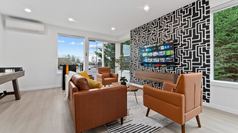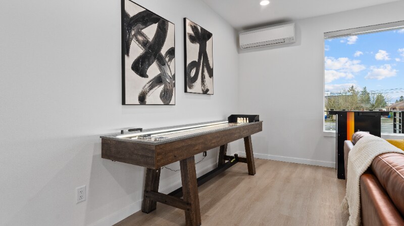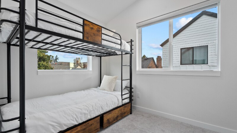 Property Id: 2333262 Enjoy a stylish and modern new construction Townhome where you will have everything you need to make yourself right at home. Just minutes away from downtown Ballard, Woodland park Zoo, Greenlake, and downtown Seattle. Add my listing to your wishlist by clicking by clicking the ?? in the upper right corner. - This is a multi-level home with stairs. Please ensure all guests are aware and able to navigate them comfortably UPSTAIRS: - Master bedroom with two queen beds (Ductless mini split AC available) - Access to Covered Rooftop - Master bath - Bonus Bedroom: If you walk past the master bedroom you will have access to a room with two twin XL beds that are bunks beds. (Heater only) MAIN LEVEL: - Living room with a 65-inch Smart TV - NO Cable (Ductless mini split AC available) - Fully Equipped Kitchen - Dining room - 9 foot Shuffleboard - Arcade machine FIRST FLOOR: - Bedroom with queen bed (Heater only) - Bedroom with King bed (Heater only) - Laundry room with washer & dryer PARKING: **Important** - There is one free designated parking space right in front of the house. Please only park small or medium size cars. For large cars like pick up trucks and long SUV's we recommend parking out on the street where you can find free street parking.
